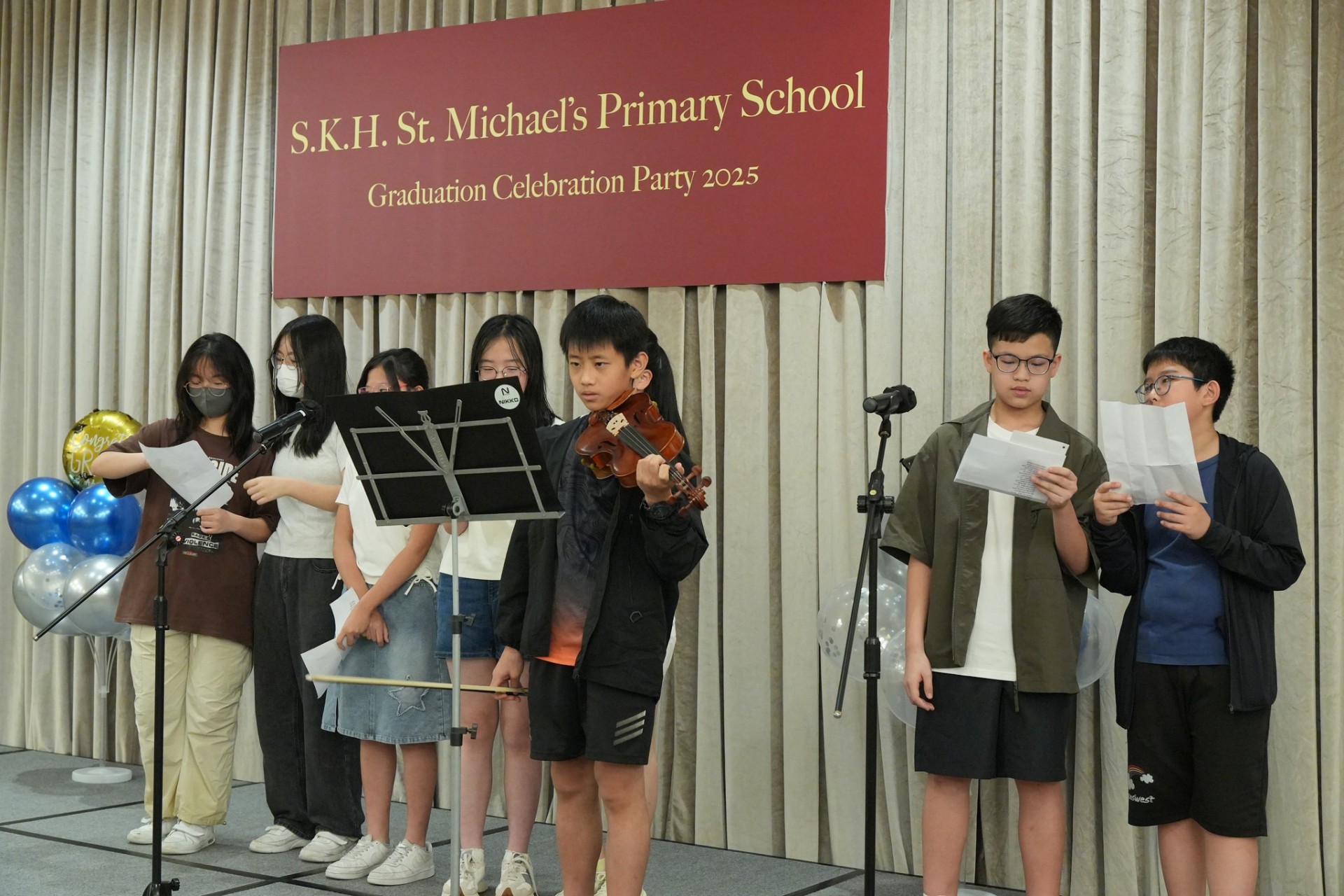 本校於2025年6月22日(星期日)為六年級同學舉辦「畢業生聯歡會暨謝師宴」,當日節目非常豐富,有抽獎、表演、遊戲、校長獻唱等。校長勉勵同學努力之餘,還要孝敬父母;畢業同學更藉此上台向老師表達謝意,同學由衷的言辭觸動了老師的心。盼望畢業同學能以哥林多前書十三章13節「如今常存的有信,有望,有愛;這三樣,其中最大的是愛。」作為人生的座右銘。