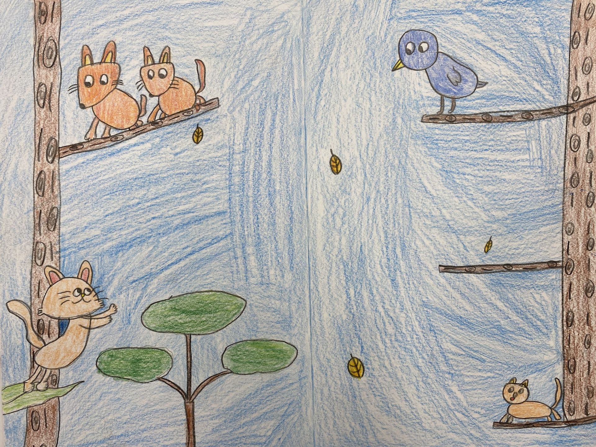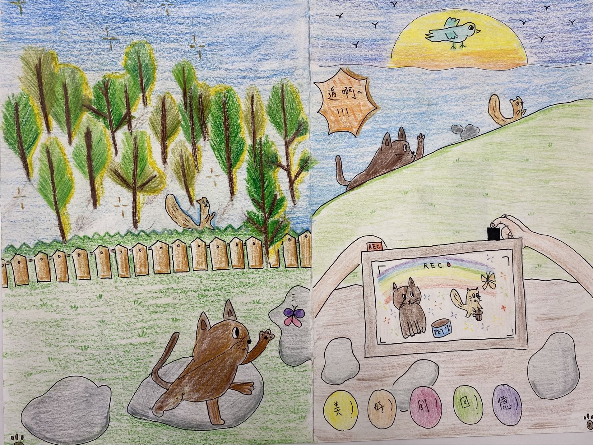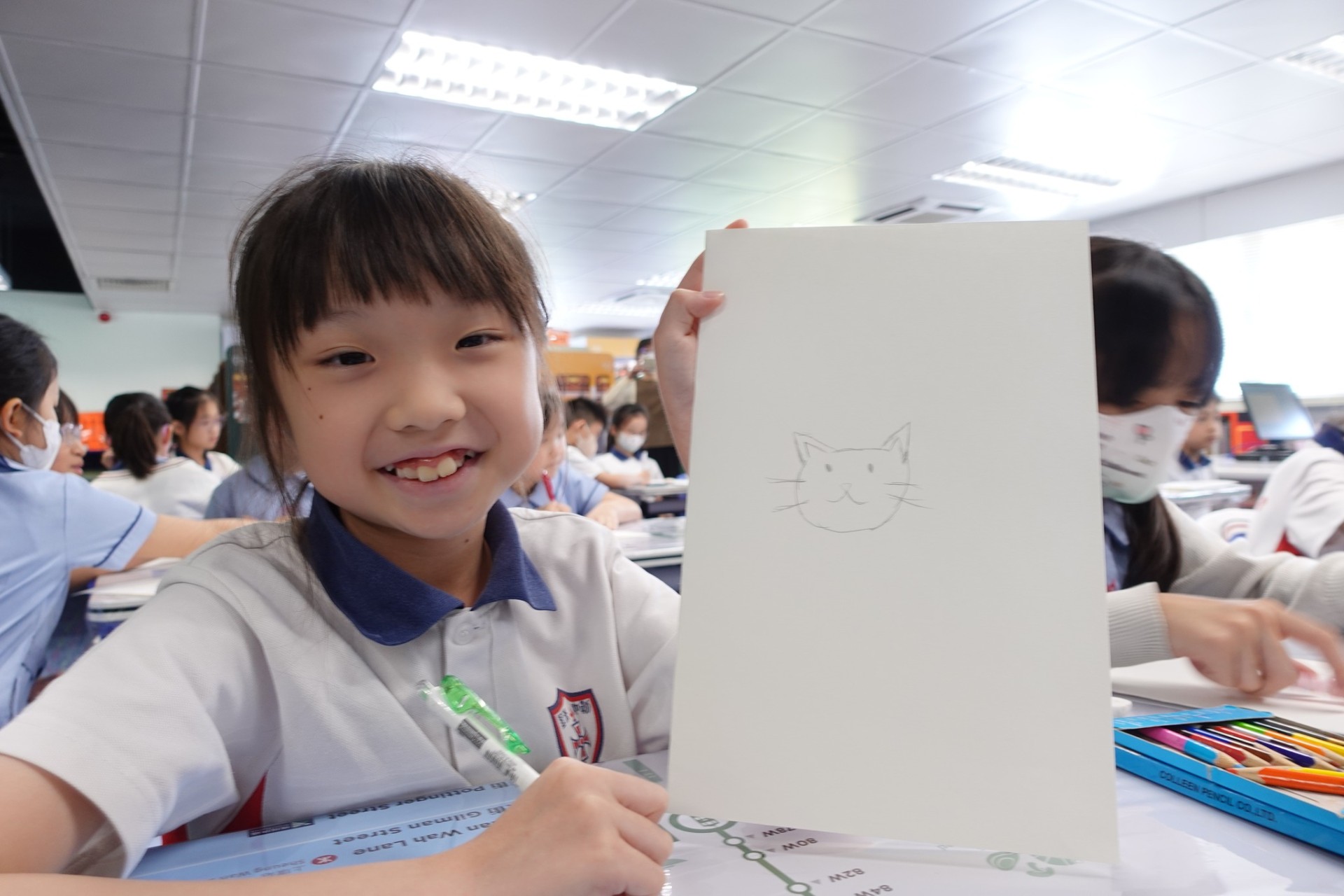 圖書科日前為三至四年級舉辦了「童心繪故事」活動,目的是透過繪本—調皮的花貓離家冒險的故事,引發同學思考在身處不同情境時,怎樣面對。導師引導同學如何透過繪畫,把自己所思所感受的紀錄下來,成為「小小插畫家」。