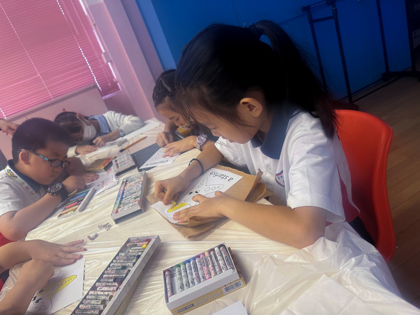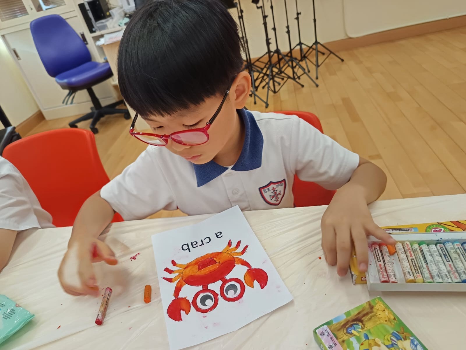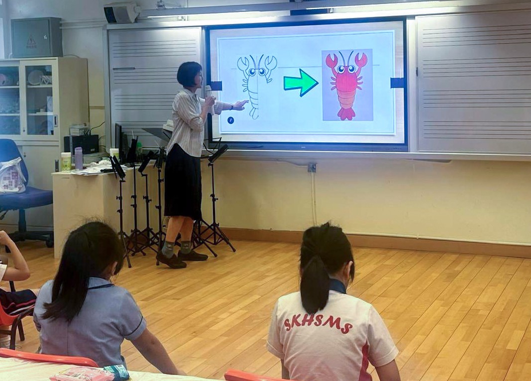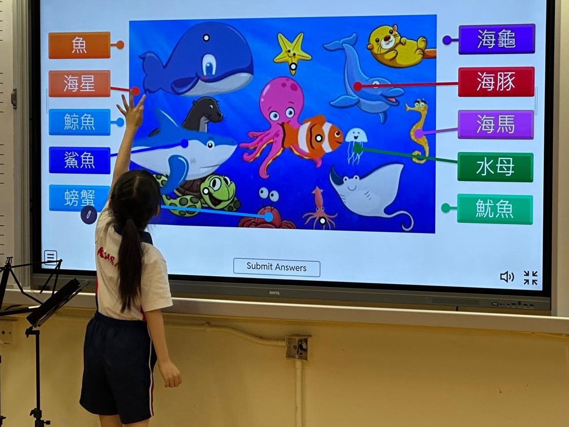 二年級同學透過創新科技沉浸系統來探索海洋世界, 認識有脊椎和無脊椎動物,提升對生物分類的認識。藉着課堂,學習對稱圖案的畫法和對比色填色技巧,並發揮藝術創意。在結合科技、藝術與互動元素的沉浸室內同學們與自己的作品產生互動的元素,有效加深對海洋生物的理解,強化學習成果。