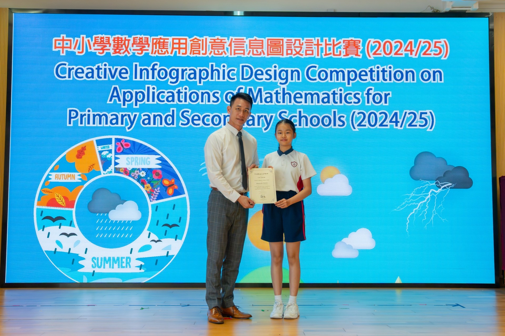 本校麥芷維同學和劉恩樂同學參加教育局數學教育組舉辦中小學數學應用創意信息圖設計比賽(2024/25),表現優秀,榮獲高小組優異獎。恭喜恭喜!