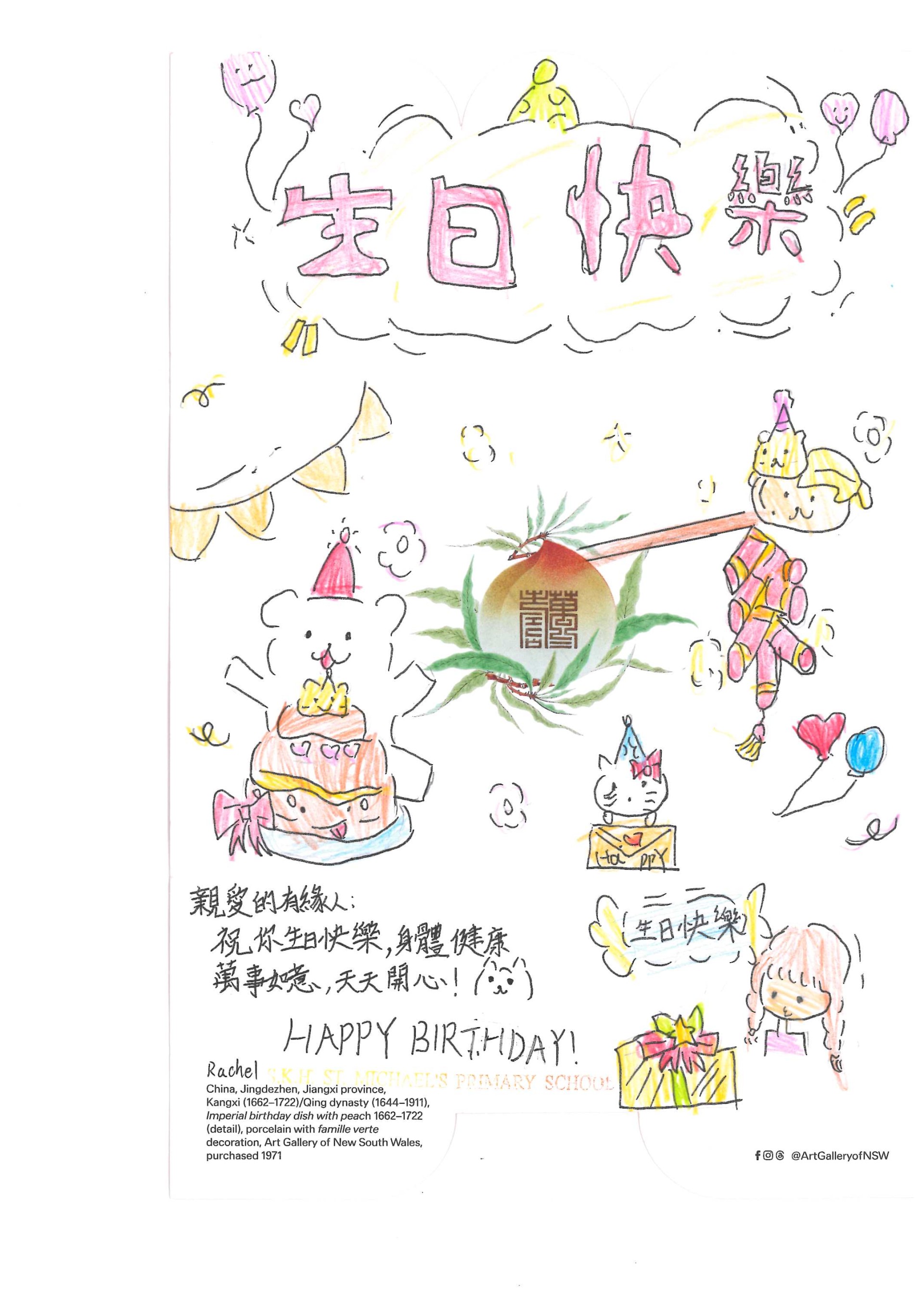 本校同學榮獲澳洲新南威爾斯美術館館長來函邀請參與【新南威爾斯美術館】的《祝你也生日快樂》Happy Birthday 2U2 展覽,該盛事已於8月17日晚上圓滿閉幕。同學們創作的「種子生日賀卡」極其亮麗,並在國際藝術展中送贈予現場參觀者,將關懷與祝福傳遞到世界另一角落。 展出以來,同學作品一直深受悉尼民眾及旅客喜愛,美術館各人都對同學們作品的創意和心思驚嘆不已,【香港駐悉尼經濟貿易辦事處】的莊國民處長更親身到來參觀和道賀。他對同學們以充滿暖意的生日卡促進澳洲與香港,以致我國,兩地人民的友誼大為讚賞。藝術展更獲澳洲電視台channel 7的Sydney Weekender 及人民網做專題報導,讓串串溫暖的祝福像陽光般散落! 更多詳細資料:https://www.facebook.com/HB2U2