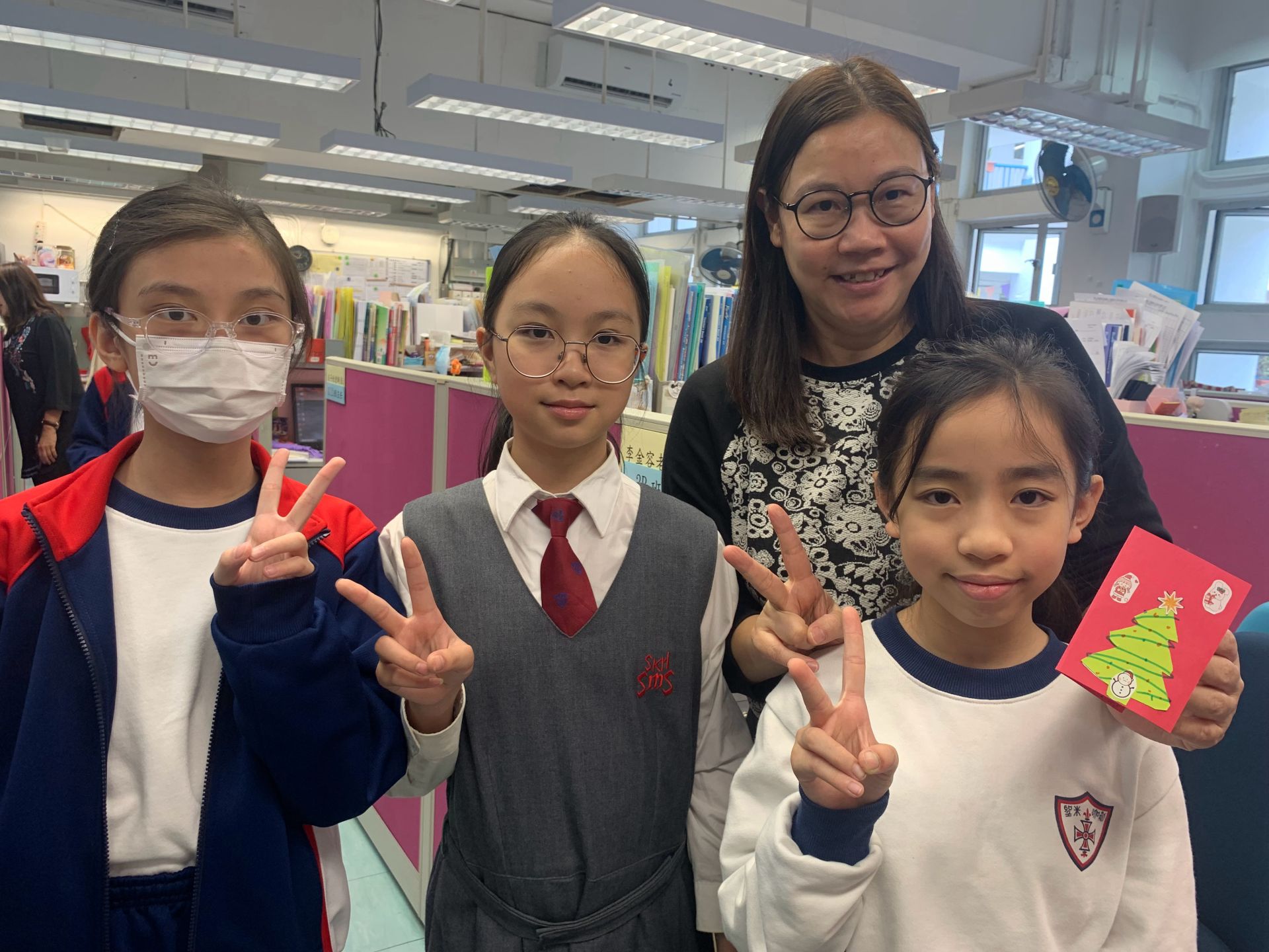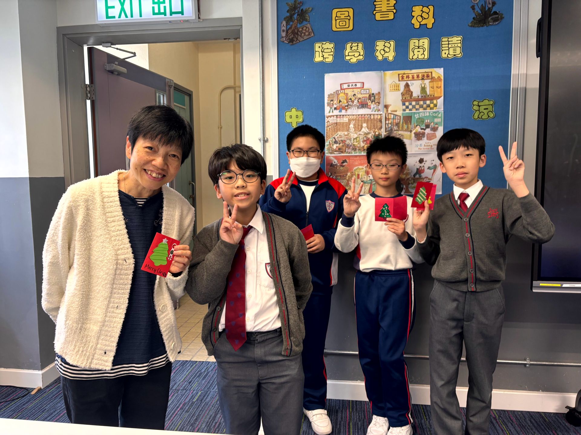 五年級成長的天空組員製作了聖誕咭送給全校老師,他們不但用心設計和裝飾聖誕咭,更在致送聖誕咭時向師長送上祝福的說話。