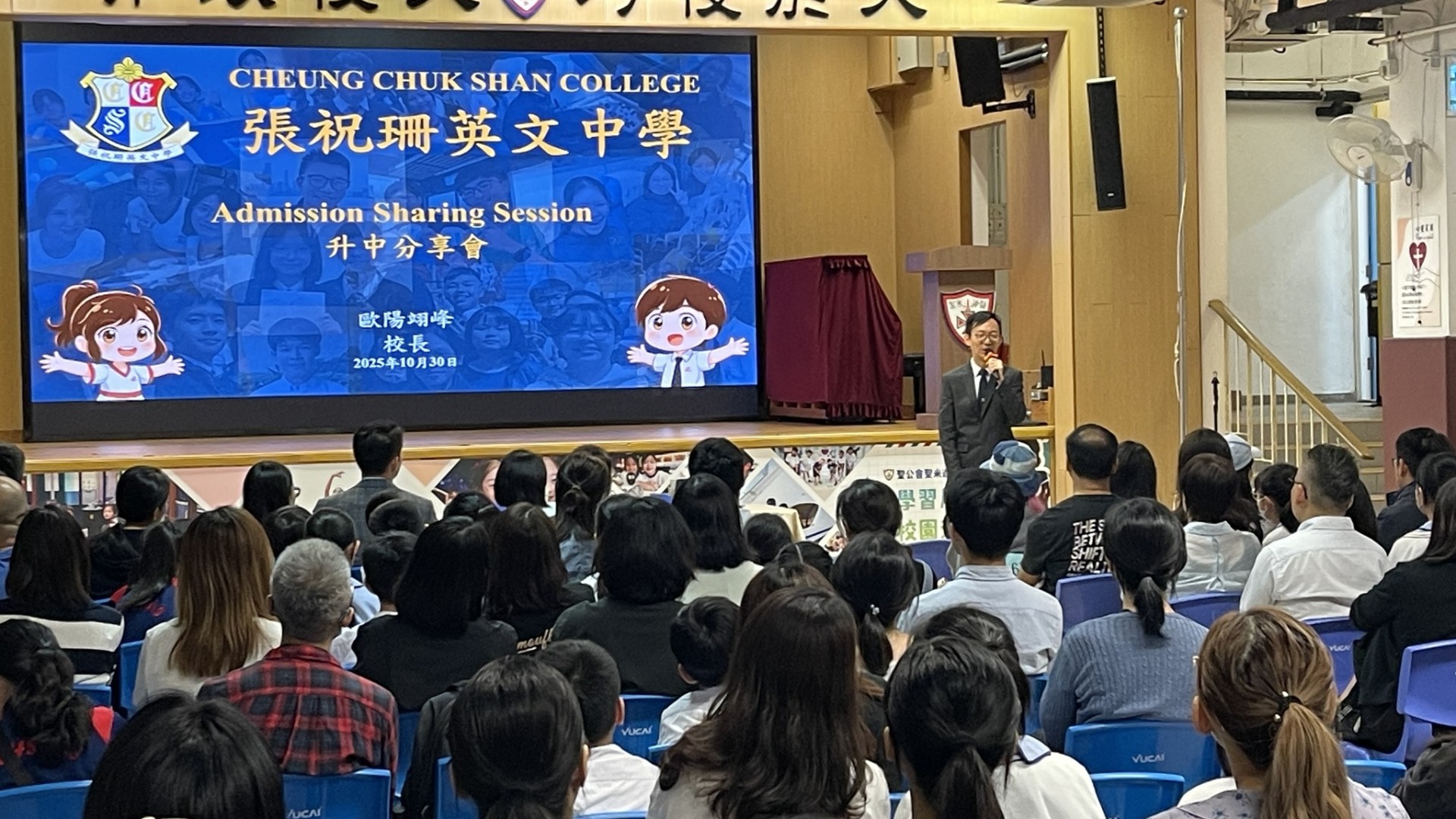 本校於10月30日舉行升中家長會,承蒙張祝珊英文中學歐陽校長蒞臨本校向各位出席的六年級家長及同學們講解「自行分配學位」的選校策略和分享學校特色。希望透過家校緊密溝通合作,幫助家長拆解升中疑難,為升中選校作好準備。