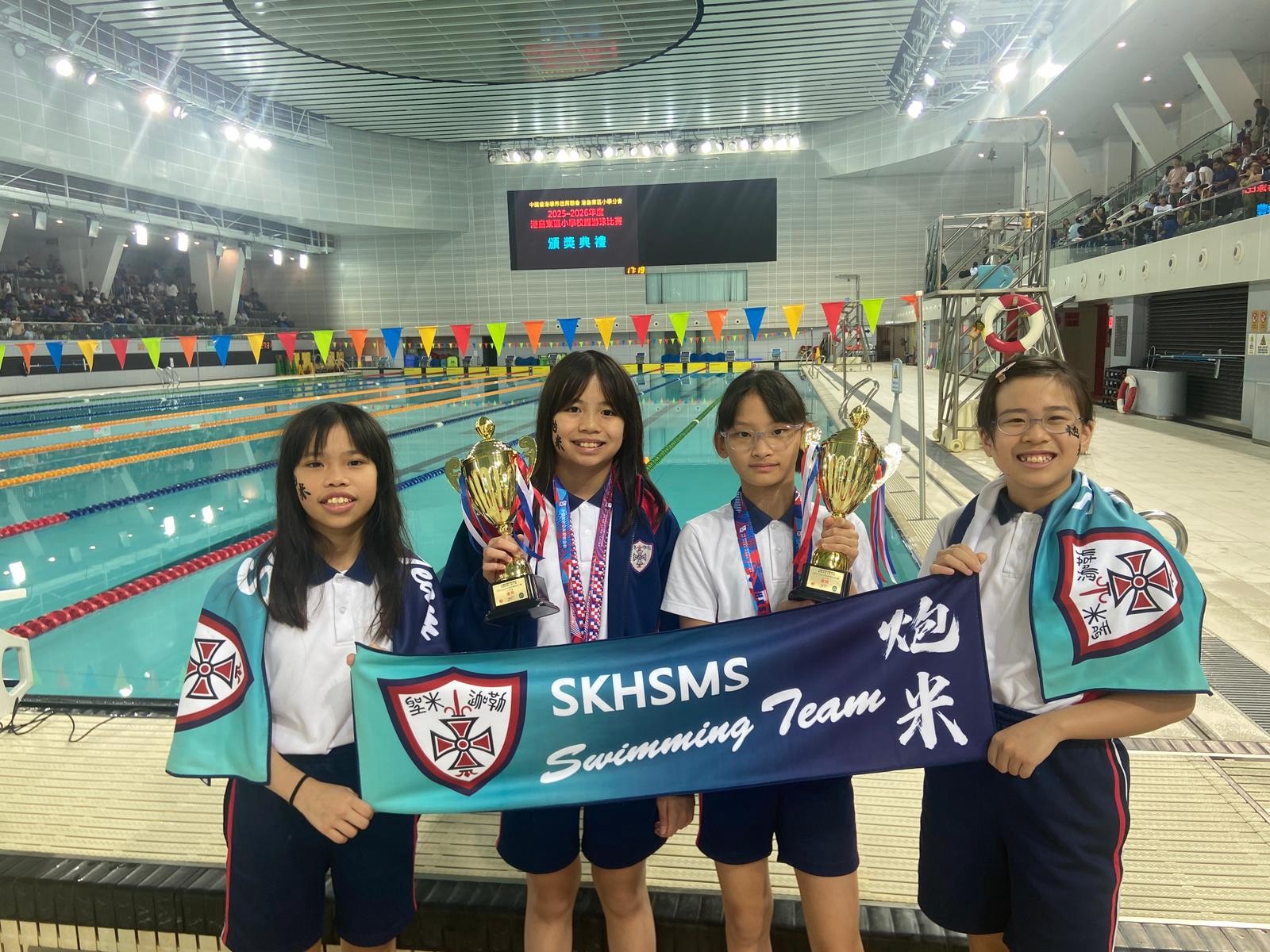 參加游泳比賽除了要掌握標準泳姿外,亦需要培養泳員的有氧耐力、爆發力及協調等能力。每周需要進行4至6次練習,一日復一日的累積,保持堅毅與專注,才有機會站上頒獎台。 恭喜每一位參賽的同學,在賽事展現出平日刻苦訓練的成果,更恭賀獲獎的同學,取得佳績。 本校6A陳禮施同學及4A黃梓賢同學將於明年6月以港島東區代表的身份參與全港小學區際游泳賽。