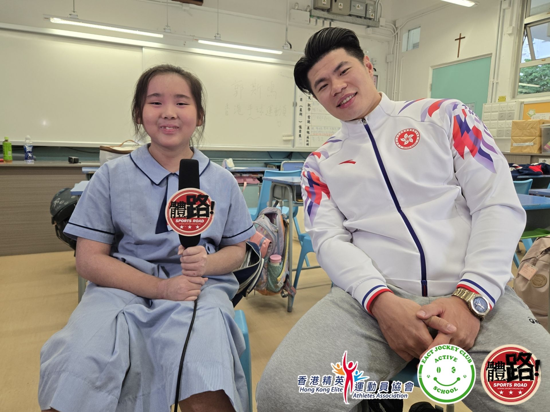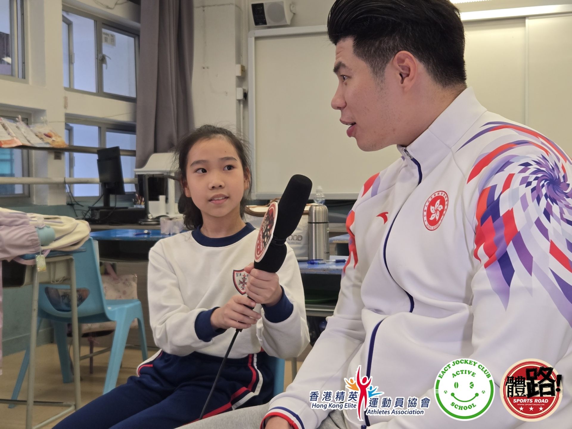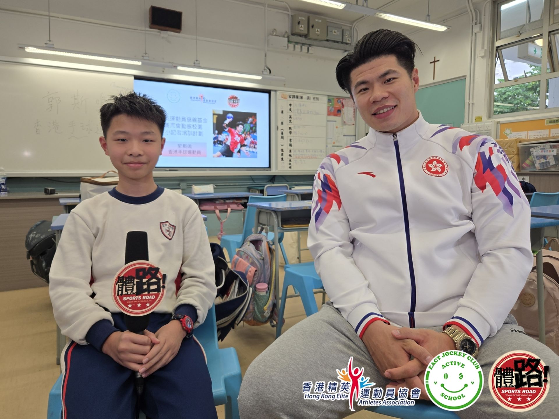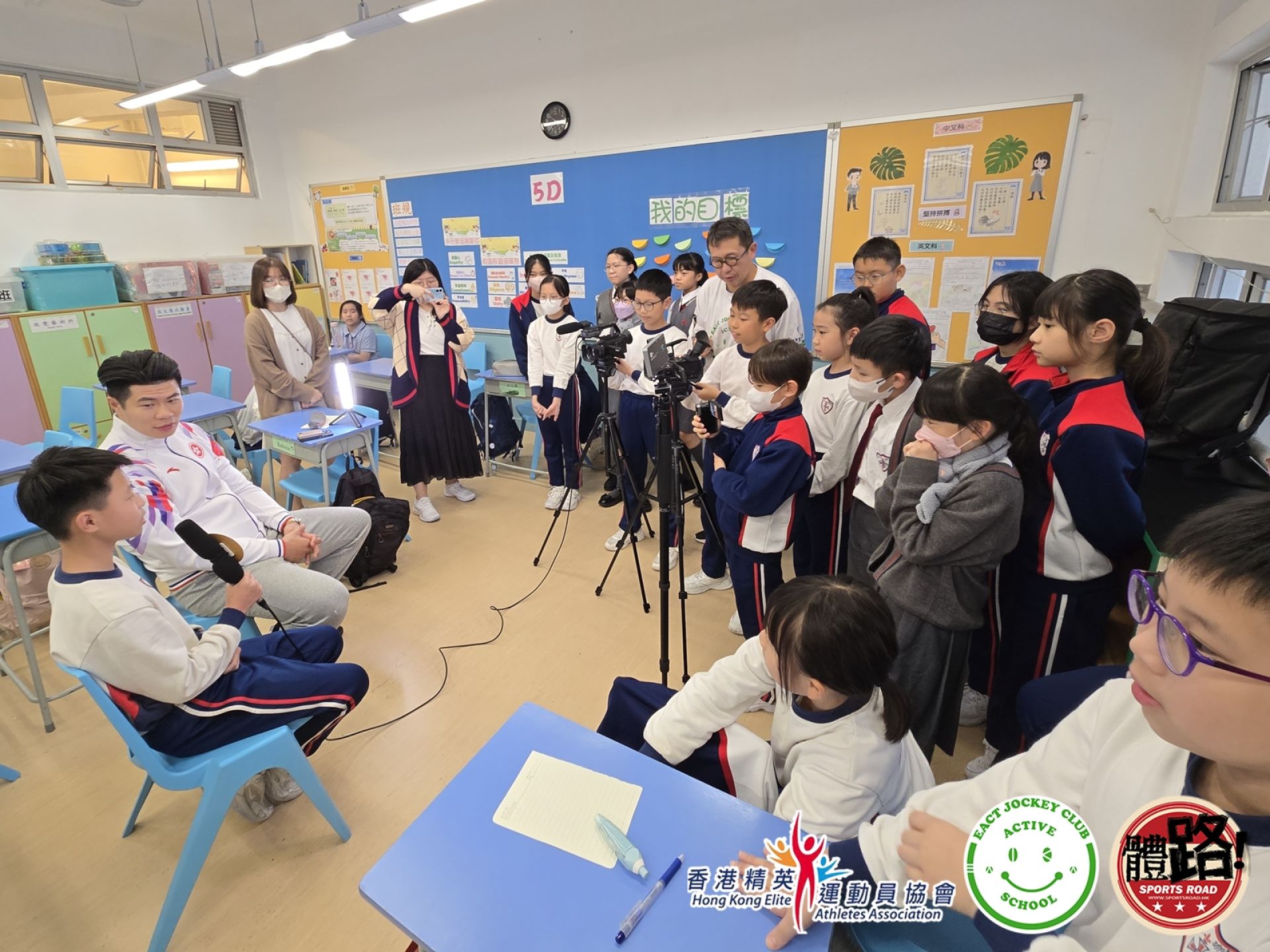 導師團隊星期二(12月2日)再次去到聖公會聖米迦勒小學,由資深體育傳媒人郭子龍教導同學新聞影像拍攝及訪問技巧。課堂下半部分邀請到上月代表香港手球隊於主場出戰粵港澳全運並創下歷來最佳成績的郭斯鳴擔任嘉賓,接受同學訪問。同學輪流擔任主持及攝影師,向鳴哥哥提出好多高質素訪問問題,合力完成今次訪問拍攝!