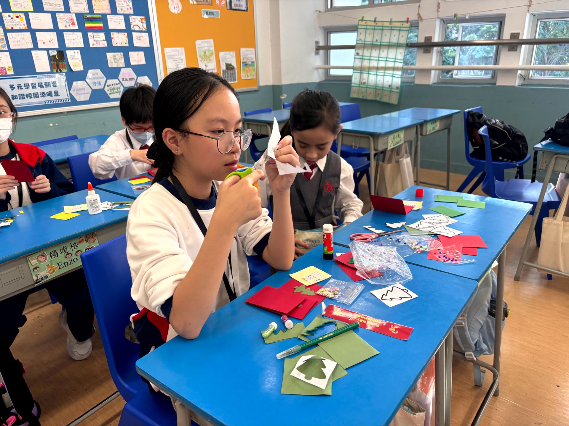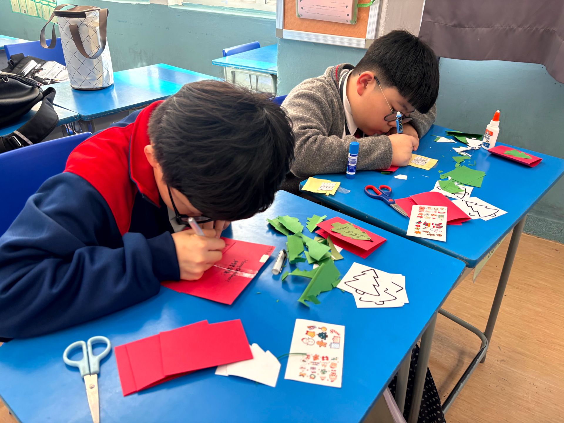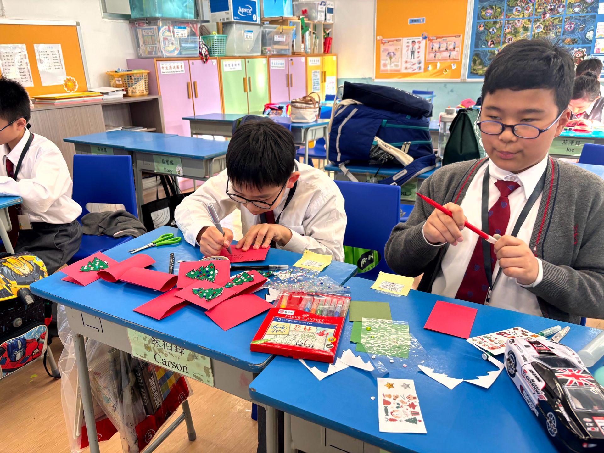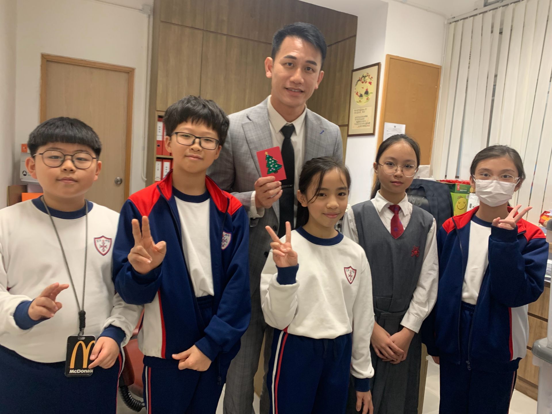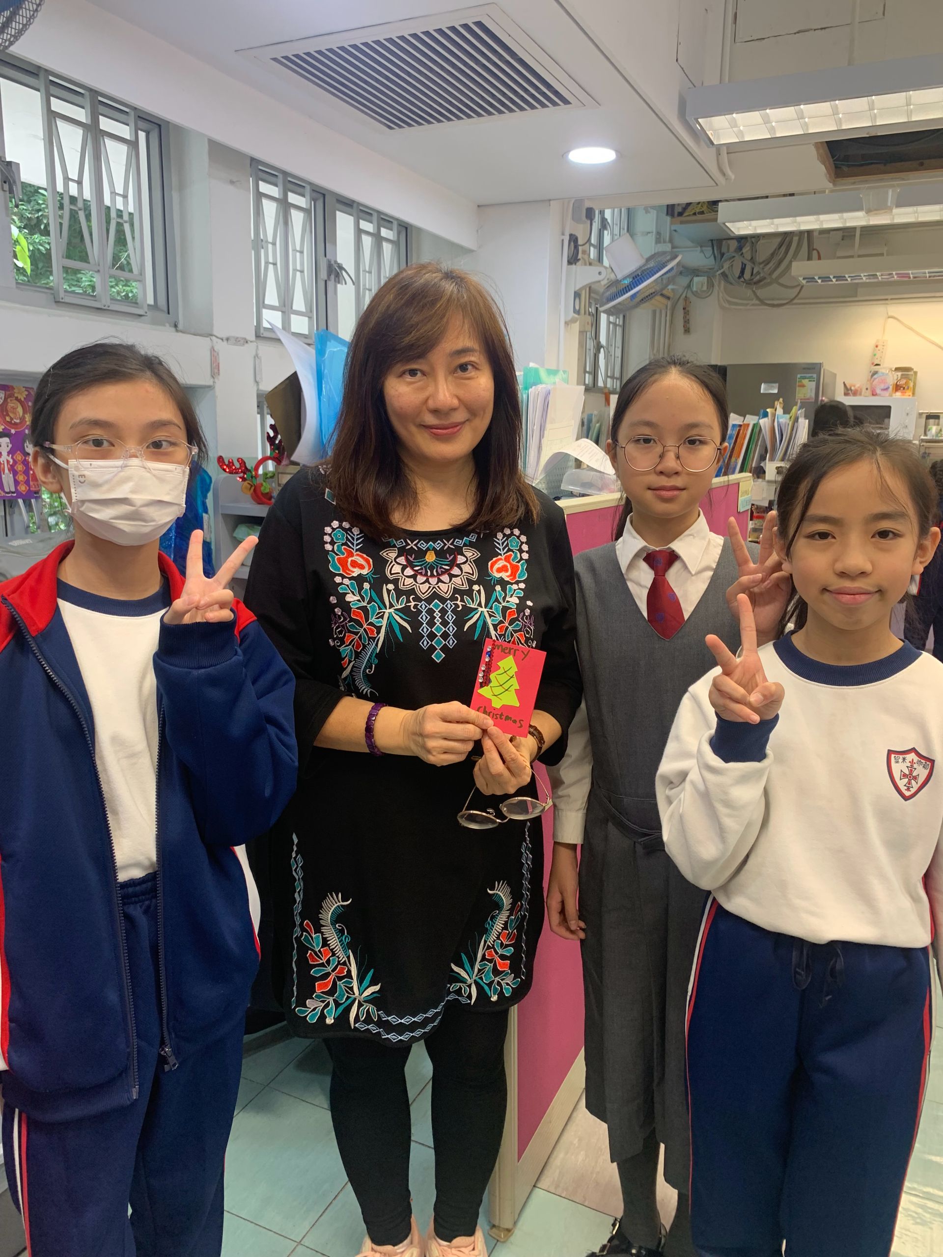 五年級成長的天空組員製作了聖誕咭送給全校老師,他們不但用心設計和裝飾聖誕咭,更在致送聖誕咭時向師長送上祝福的說話。