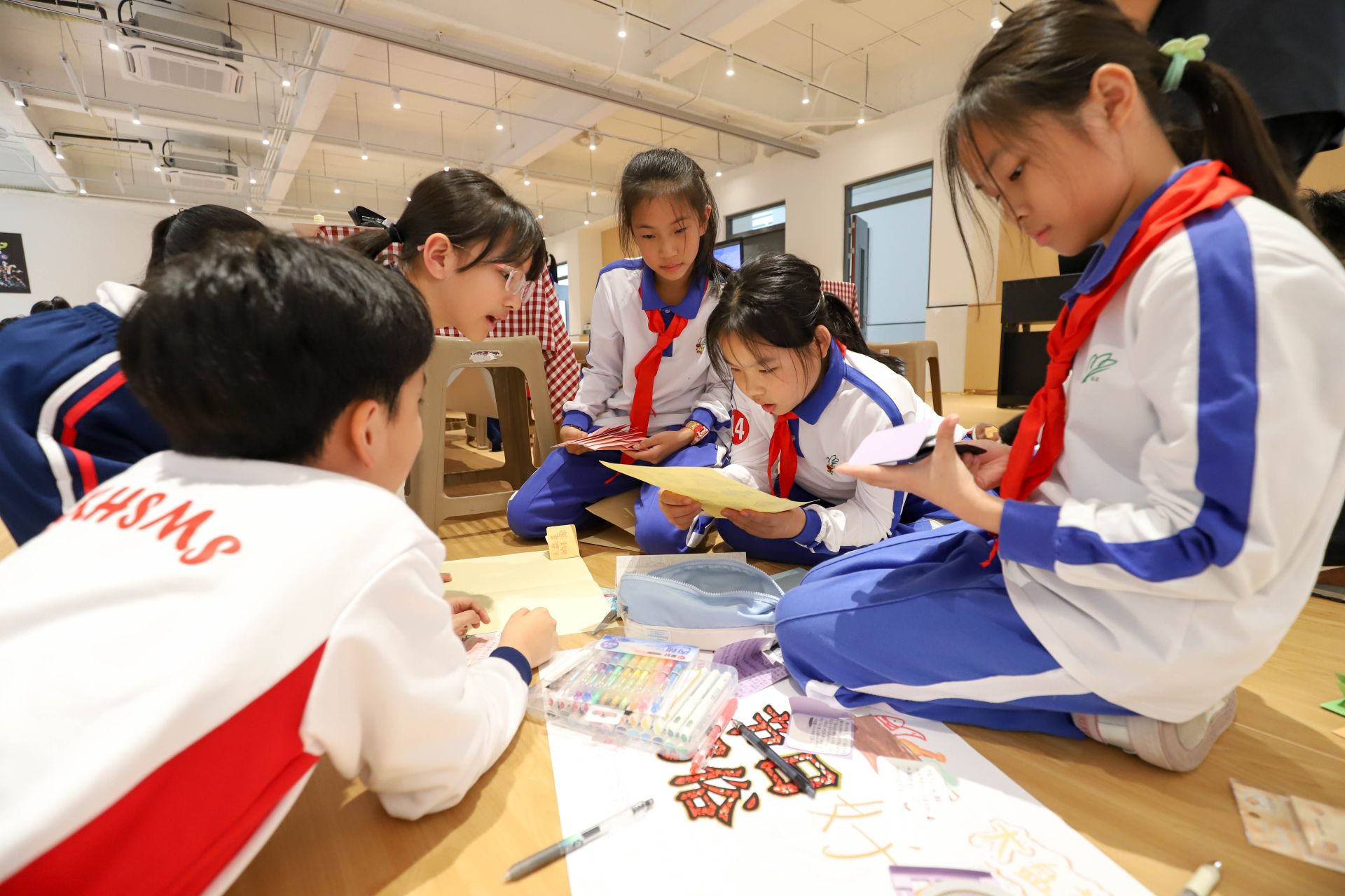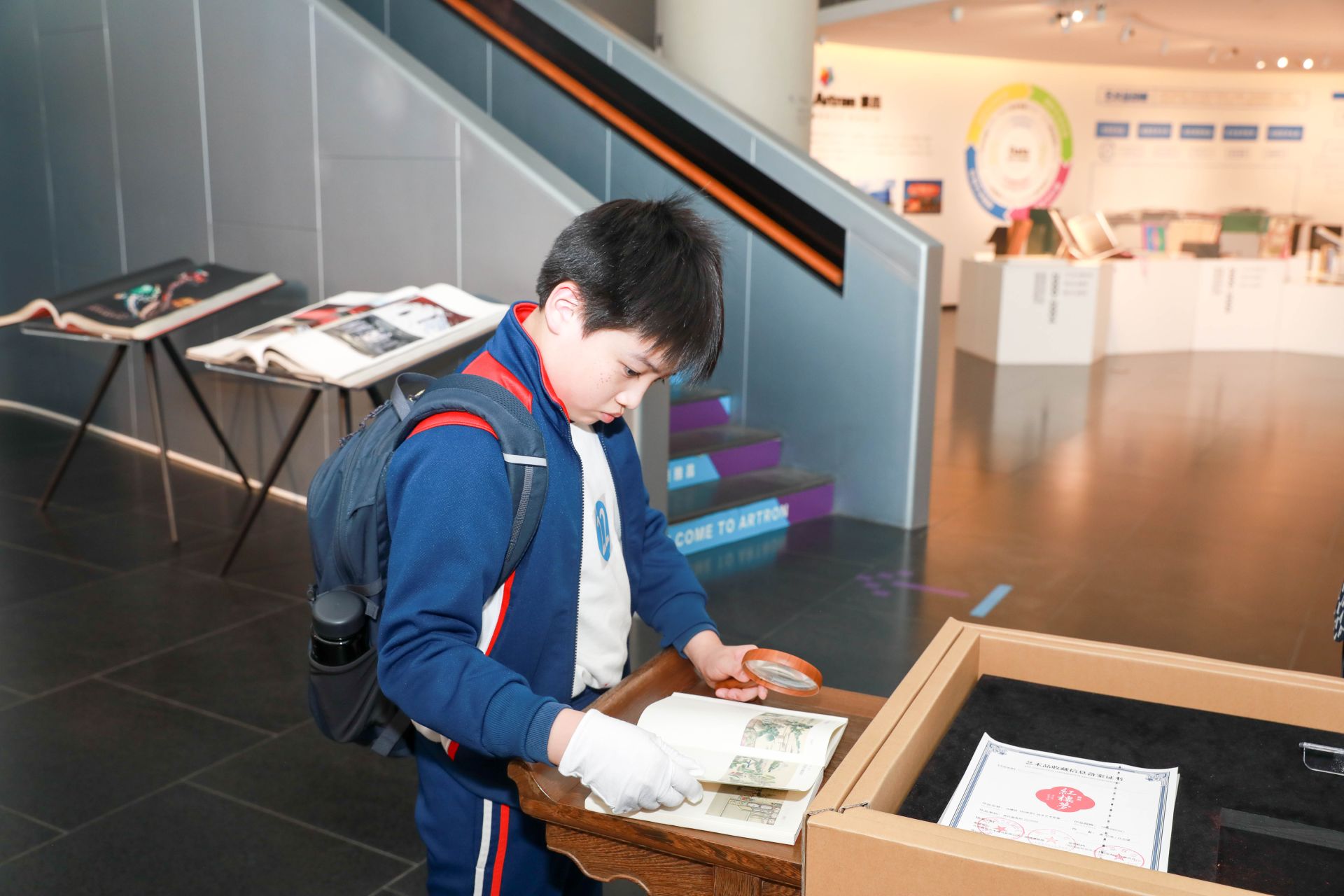 早前鄧校長與老師帶領二十多位熱愛閱讀的同學到訪姊妹學校—深圳南山實驗一小進行閱讀交流。當天我們先到訪「世界頂級藝術書籍誕生地」的深圳雅昌藝術中心。學生分組參與不同的學習活動,如在「文化自信」主題展廳,同學們通過《紅樓夢》、清明上河圖等國家級藝術珍品的傳統書籍與數位文獻對比,縱覽一本書從古至今的演變史詩。大家亦化身小小印刷匠,在專業指導下嘗試木刻版畫製作。而在雅藝課堂上,一部《一本書的誕生》短片揭開了現代印刷的神秘面紗。雅昌集團的工藝工程師親臨講解,從結構設計、印刷工藝到裝幀細節,帶領學生們觸摸樣書,全方位解密一本精美書籍從創意到成品的流程。共進午膳後,兩校的孩子圍繞「深港雙城記」 的七大主題,學生們混合編組,開啟了書籍共創工作坊。同學們分成了特色節日組、城市檔案組、古蹟組、環保組、非遺組、節日習俗組、地道美食組。通過破冰遊戲、知識分享到動手製作立體機關書,孩子們不僅完成了精美的主題書籍,更在合作中建立了真摯的友誼。