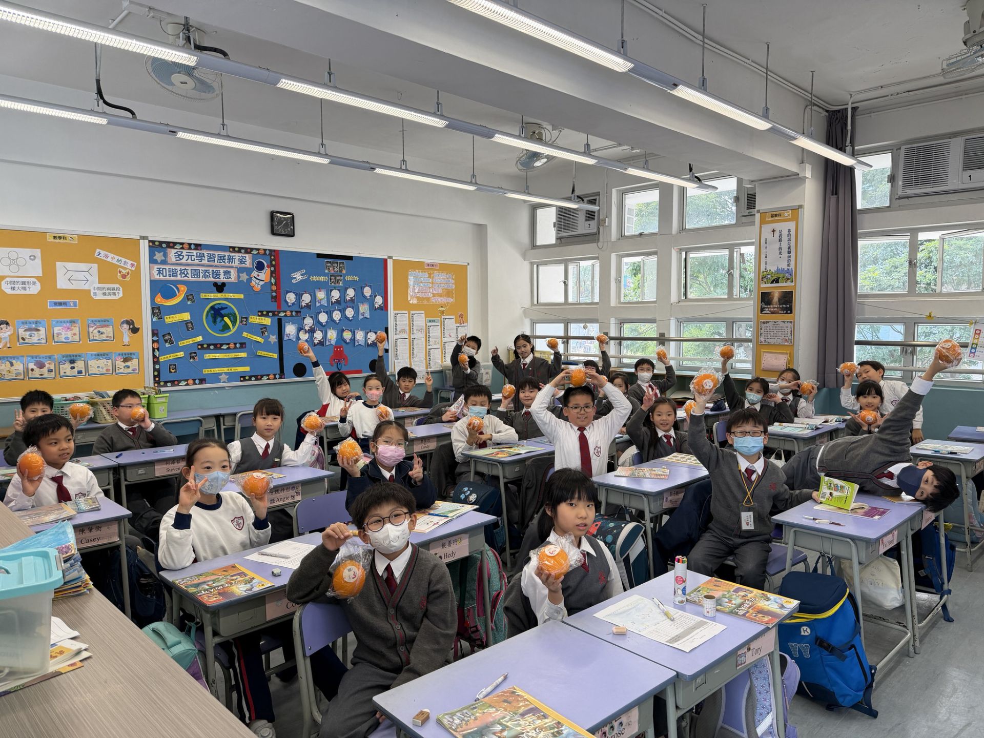 早前學校特意為全體同學派發每人一個橙,一起感受水果的清香與健康!雖然橙子的外皮上帶有花紋或斑點,但它們的果肉一樣多汁香甜。我們希望同學們從這顆橙子中學會欣賞「不完美中的美」- 外觀不完美,並不代表品質不好;真正的價值,往往藏在內在。讓我們學會接納、欣賞與感恩,一起做個擁有陽光笑容的小橙人!