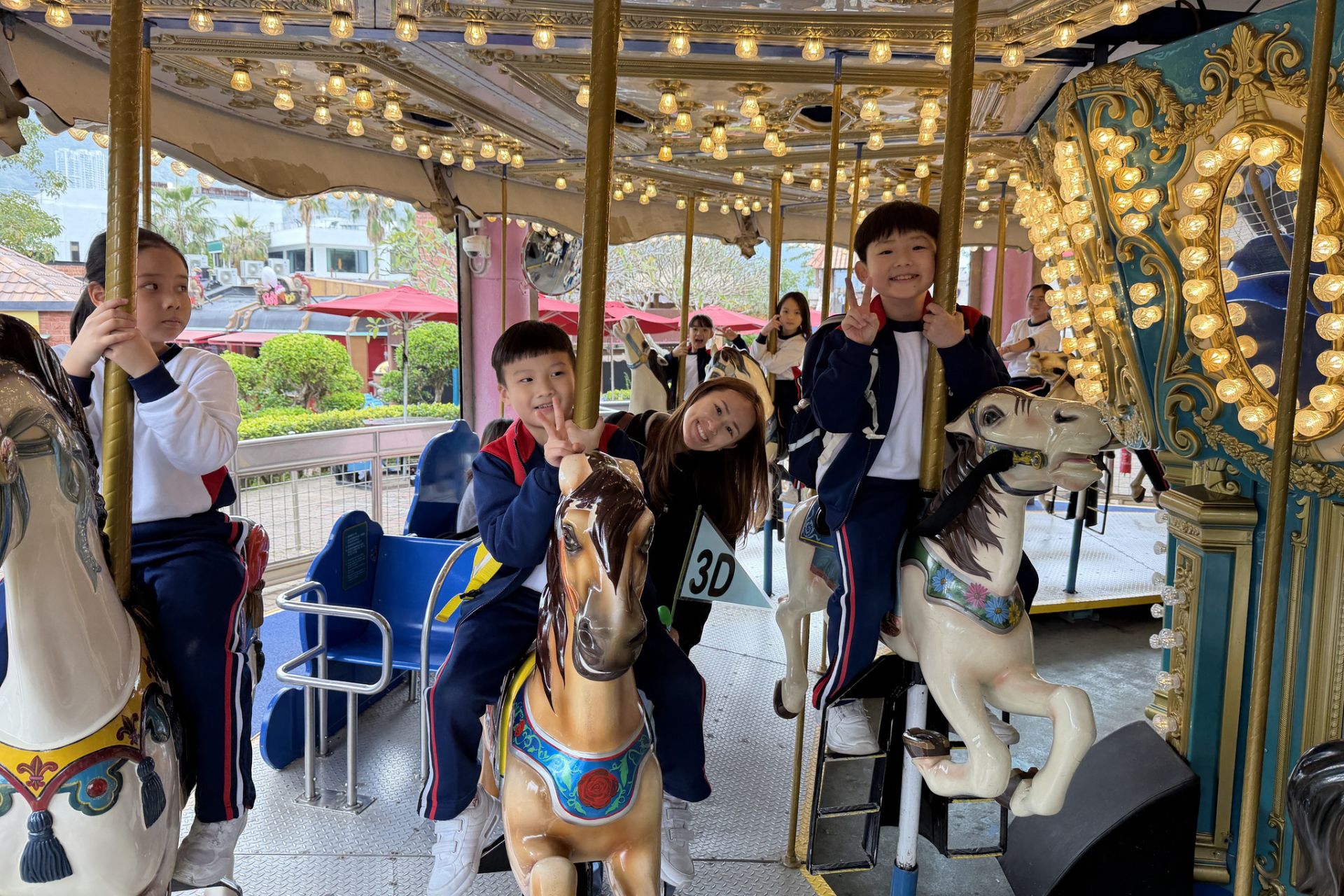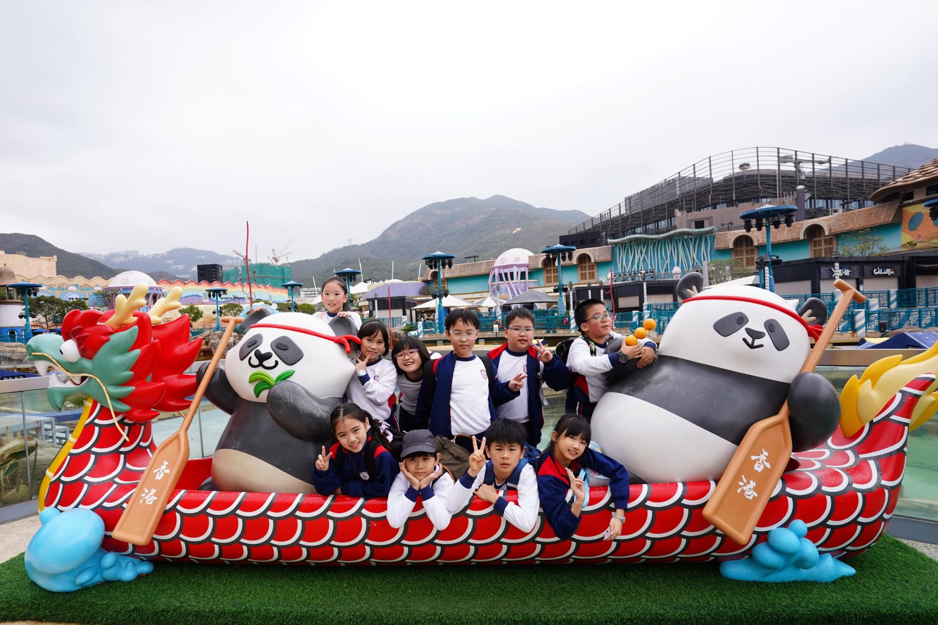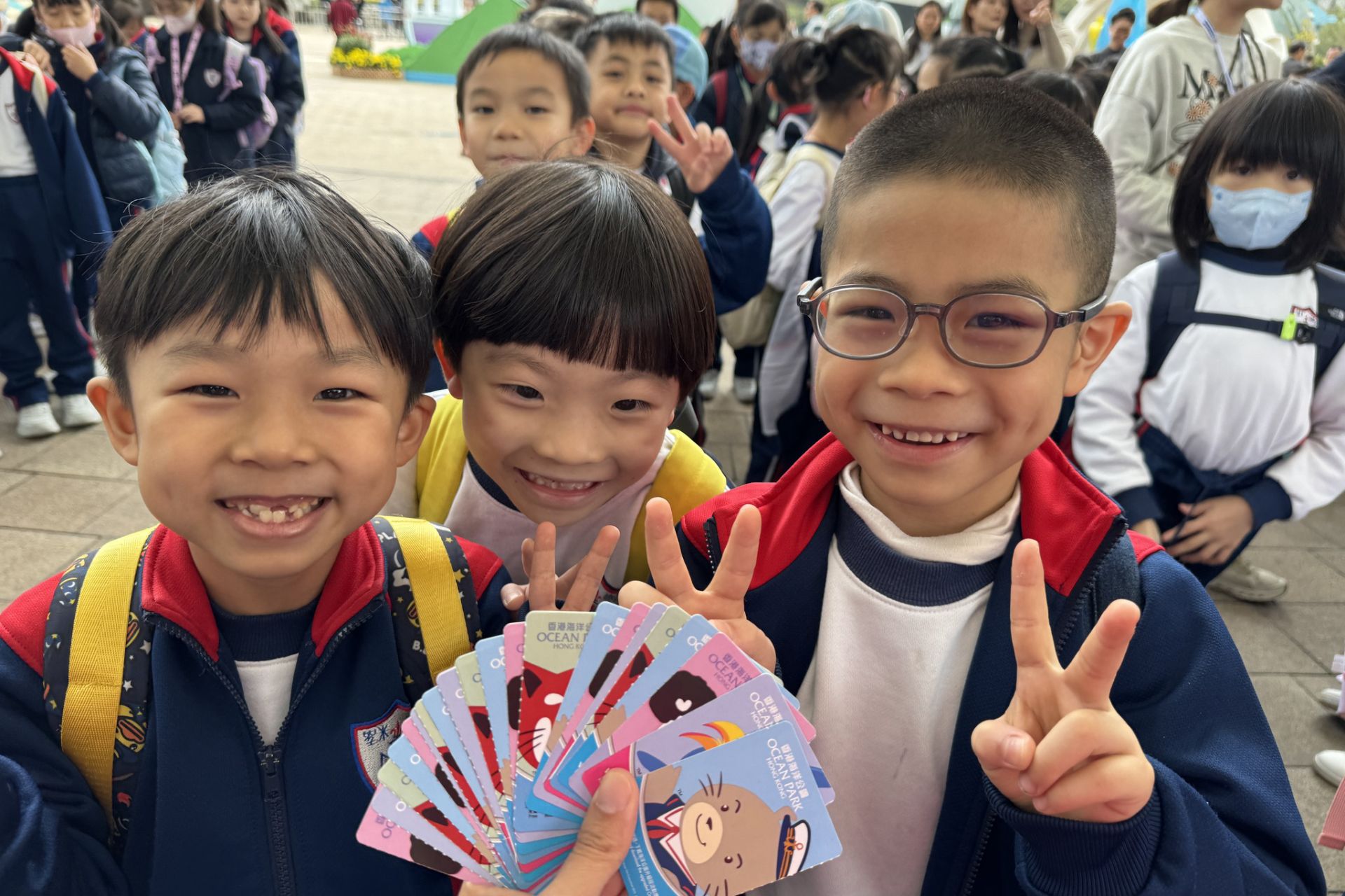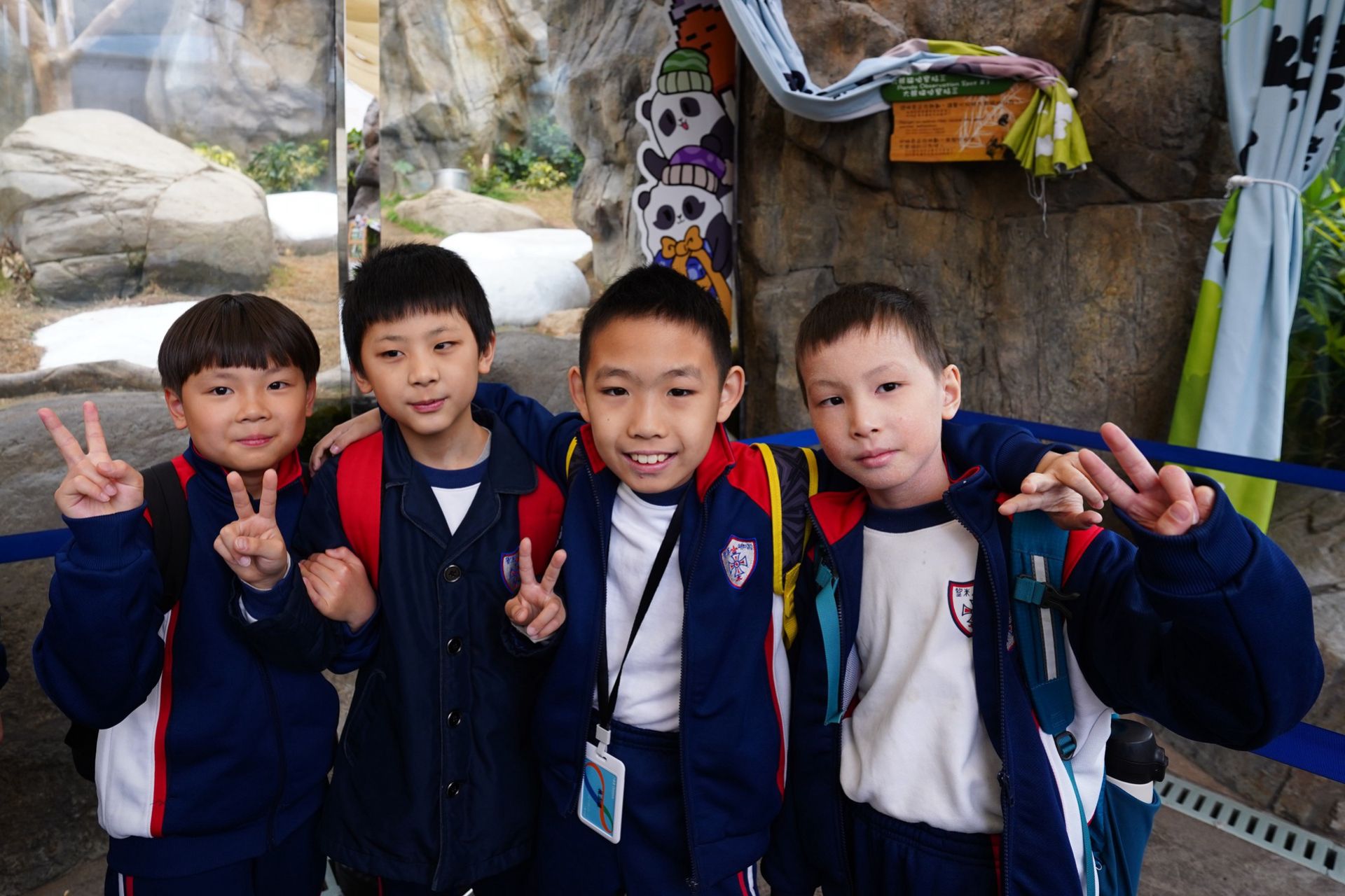旅行日當天,一至三年級的同學們走訪「亞洲動物天地」探訪可愛的大熊貓和小熊貓,接著同學們走進神秘的「海洋奇觀」,巨大的魚缸彷彿讓大家置身海底,色彩斑斕的魚兒就在身邊游過,真是大開眼界! 最開心的時光是在「威威天地」盡情玩耍,各種有趣的遊戲設施讓我們樂而忘返。這次旅行不但認識了許多海洋和動物朋友,更和同學渡過快樂的時光!