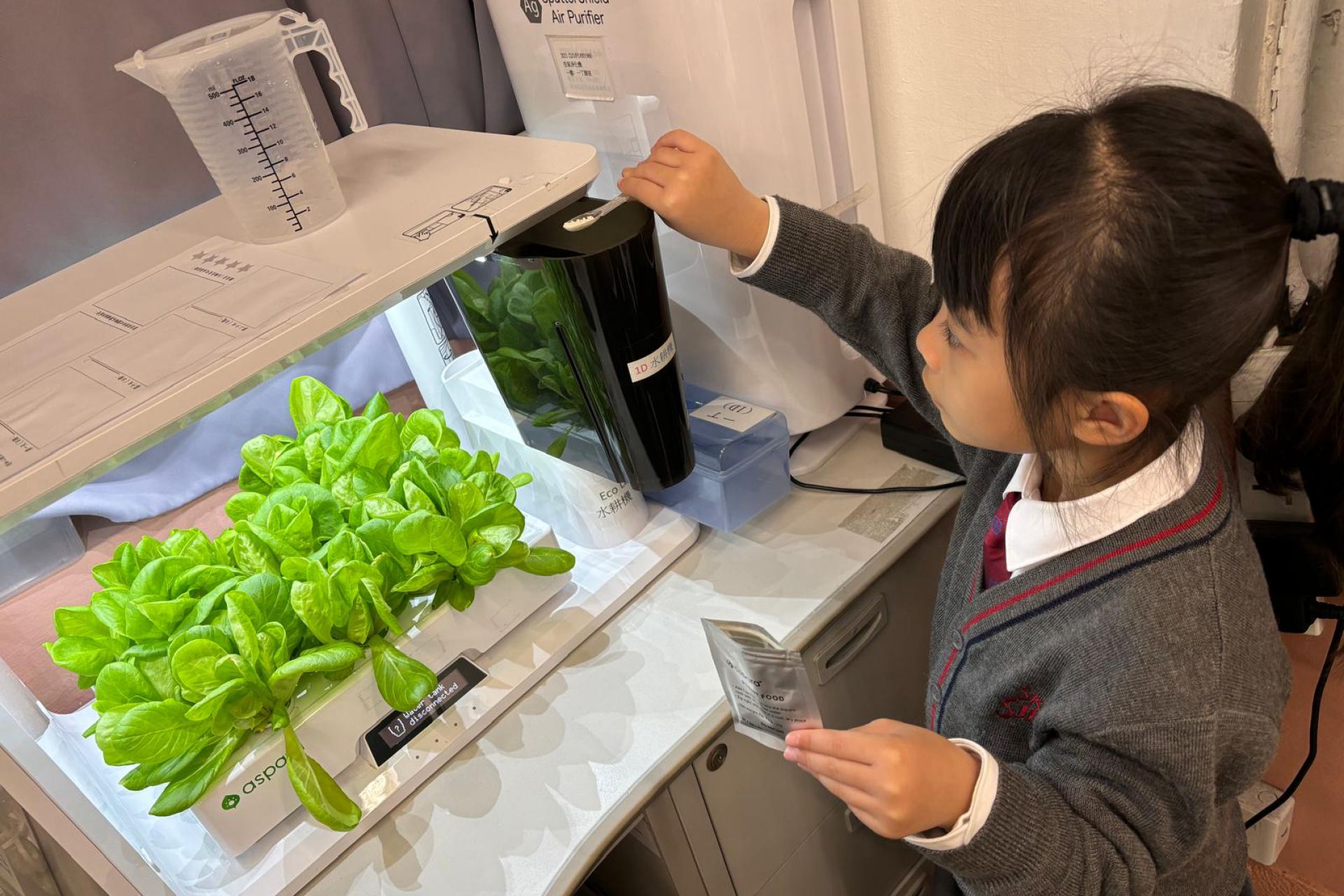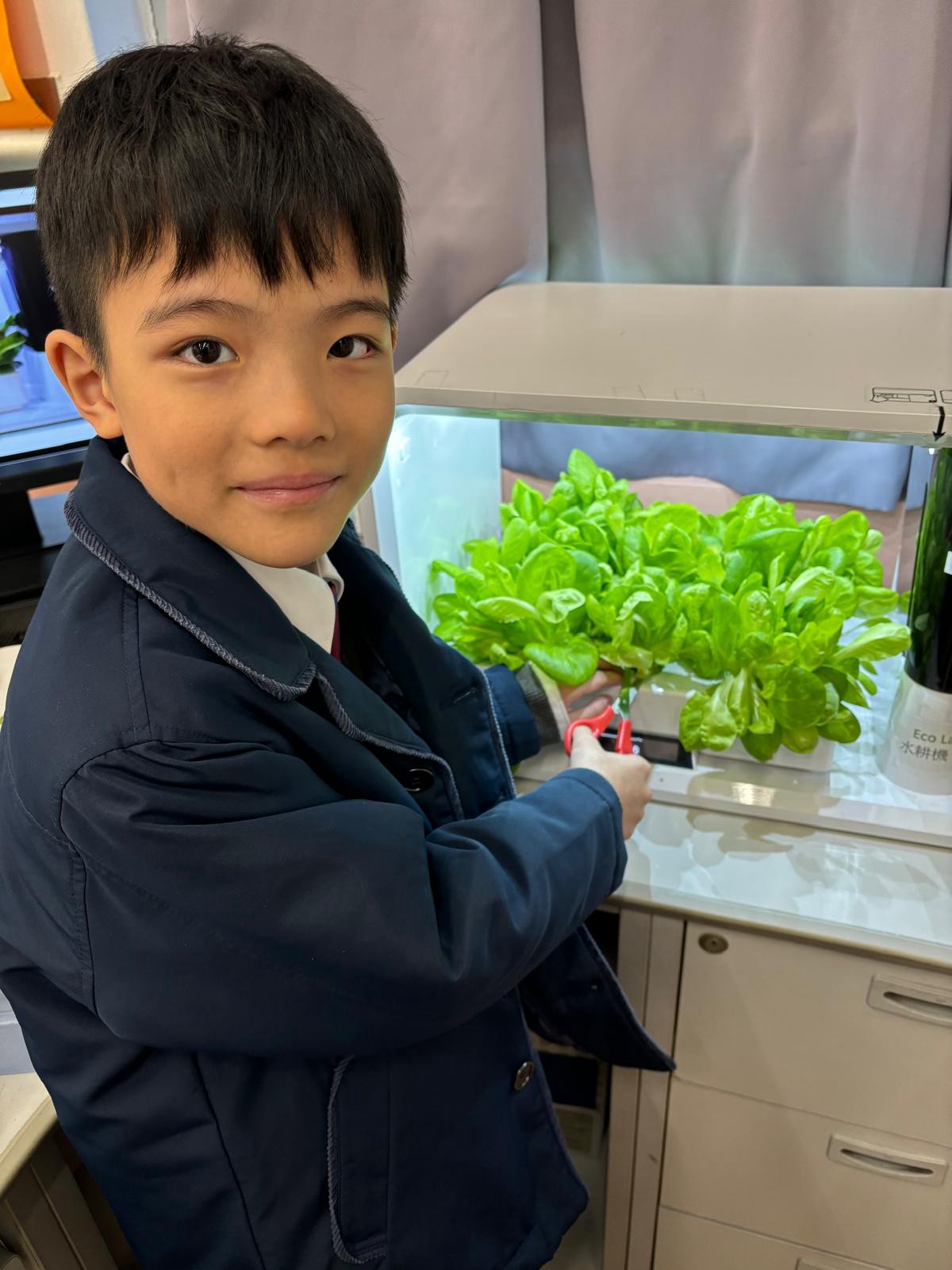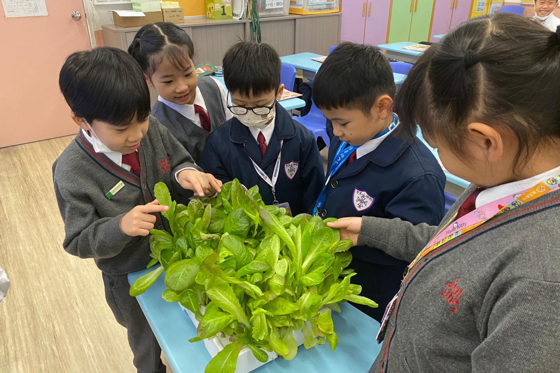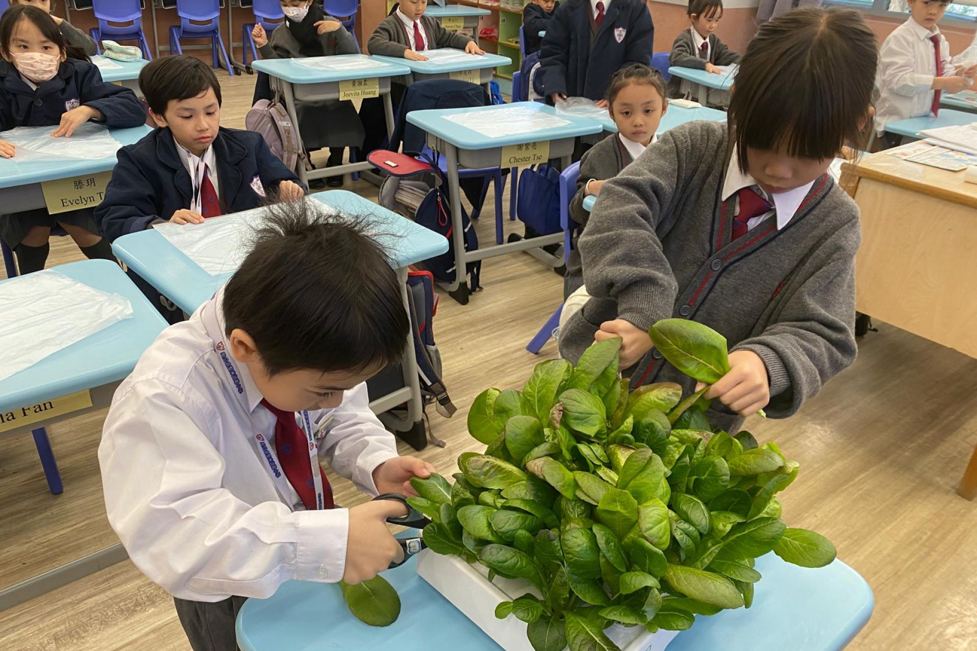 一年級的同學在科學科課堂裏學習觀察及探究植物,利用水耕種植機學習種植,探究植物需要甚麼才能健康成長。他們親手由種子培育到大棵的羅馬生菜,學習從播種到收穫的過程,了解植物生長條件及照顧技巧,培養耐心與責任感,體驗自然與生活的連結。