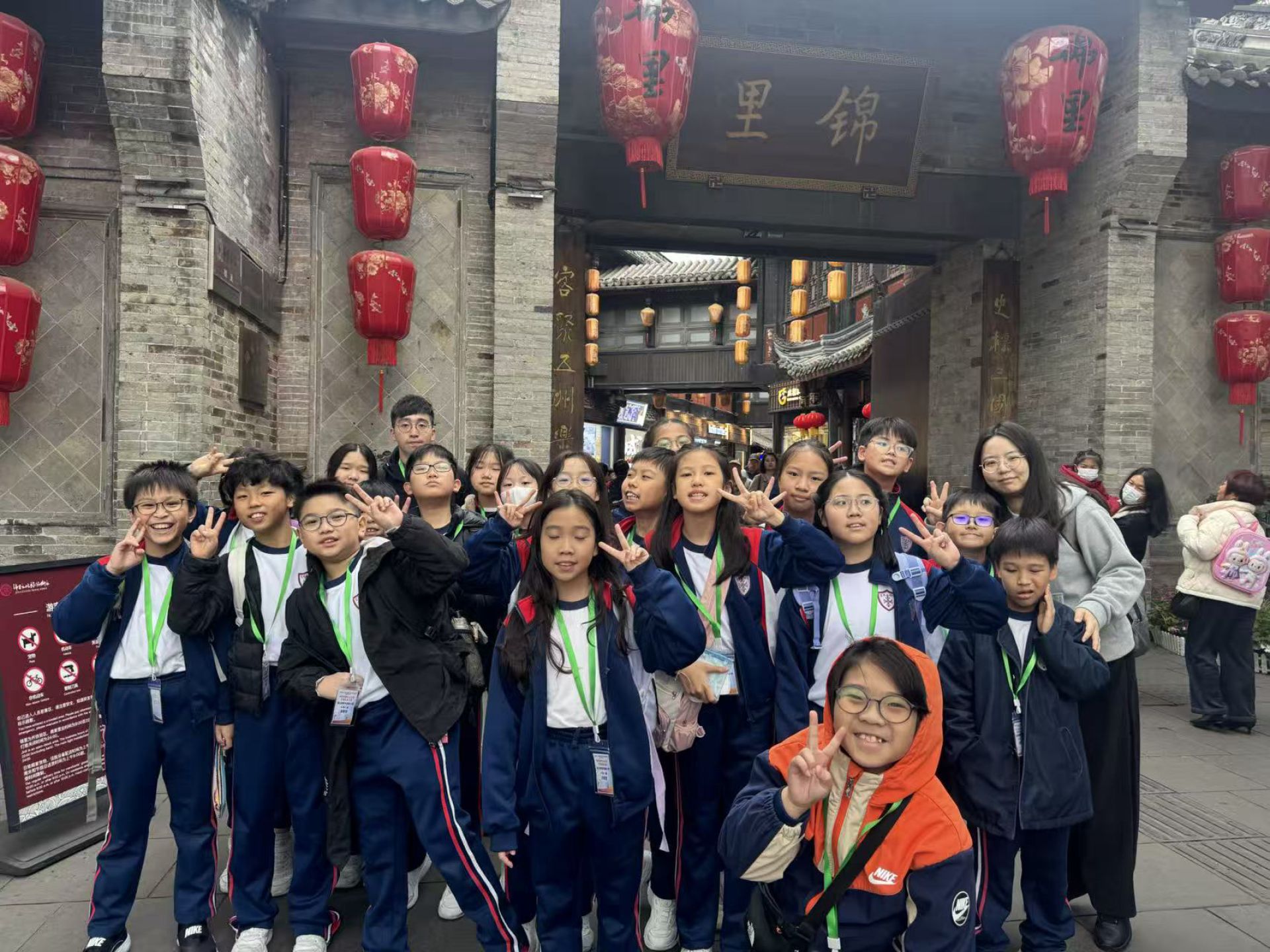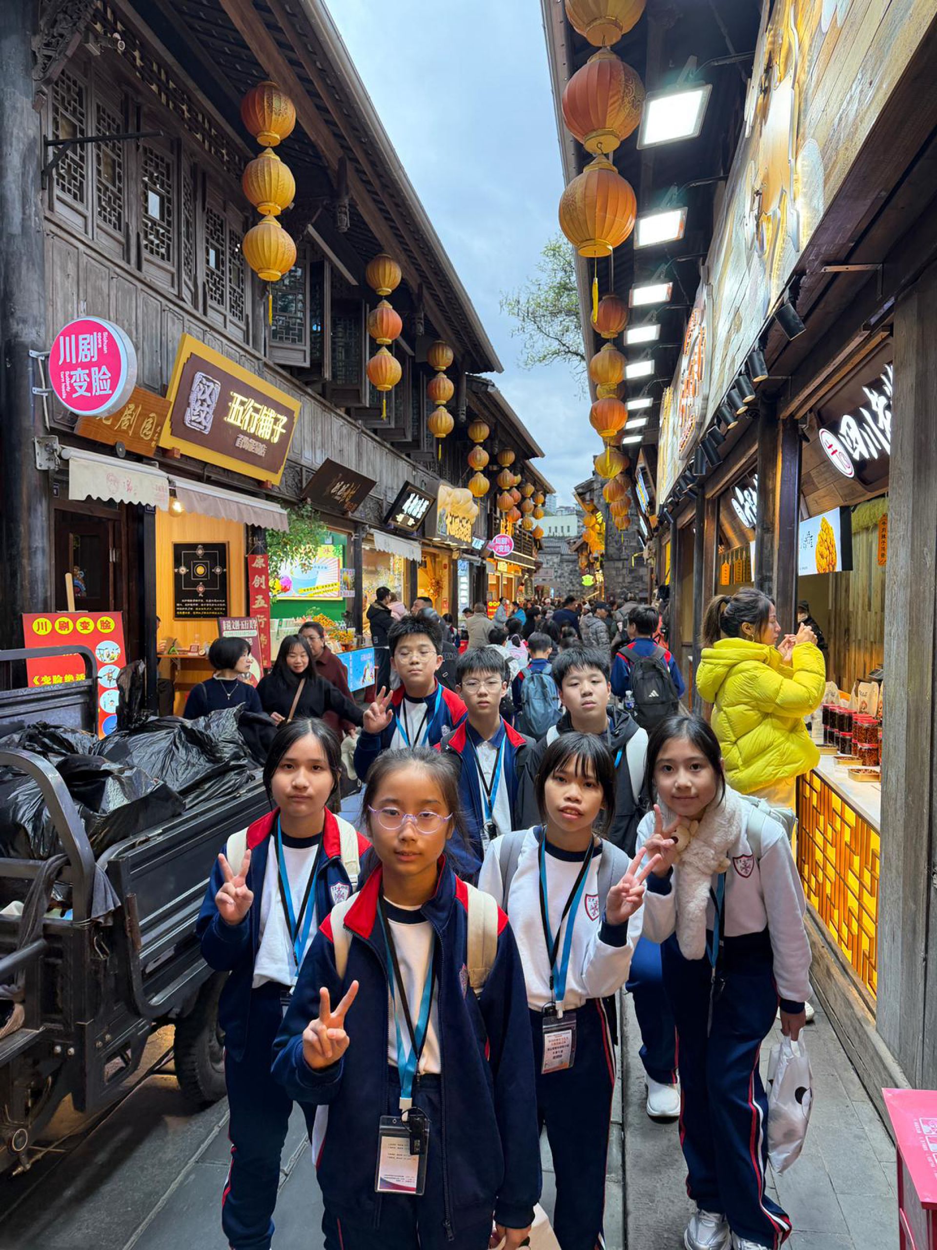 聖米迦勒的五年級同學們早前出發去四川!首站來到成都著名的武侯祠。透過導賞員生動的講解,同學們彷彿穿越回三國時代,深入了解諸葛亮與劉備的英雄事蹟。大家在古建築間穿梭,不僅學習歷史,更深刻感悟諸葛亮「忠誠、智慧與擔當」的精神。隨後,同學們漫遊錦里古街。走在蜿蜒的青石板路上,兩旁仿古建築錯落有致。精緻的糖畫、華麗的蜀繡、神祕的川劇臉譜……琳瑯滿目的非遺攤位讓大家目不暇接!同學們親身感受到巴蜀大地的獨特風韻與深厚文化底蘊,這趟文化之旅收穫滿滿!