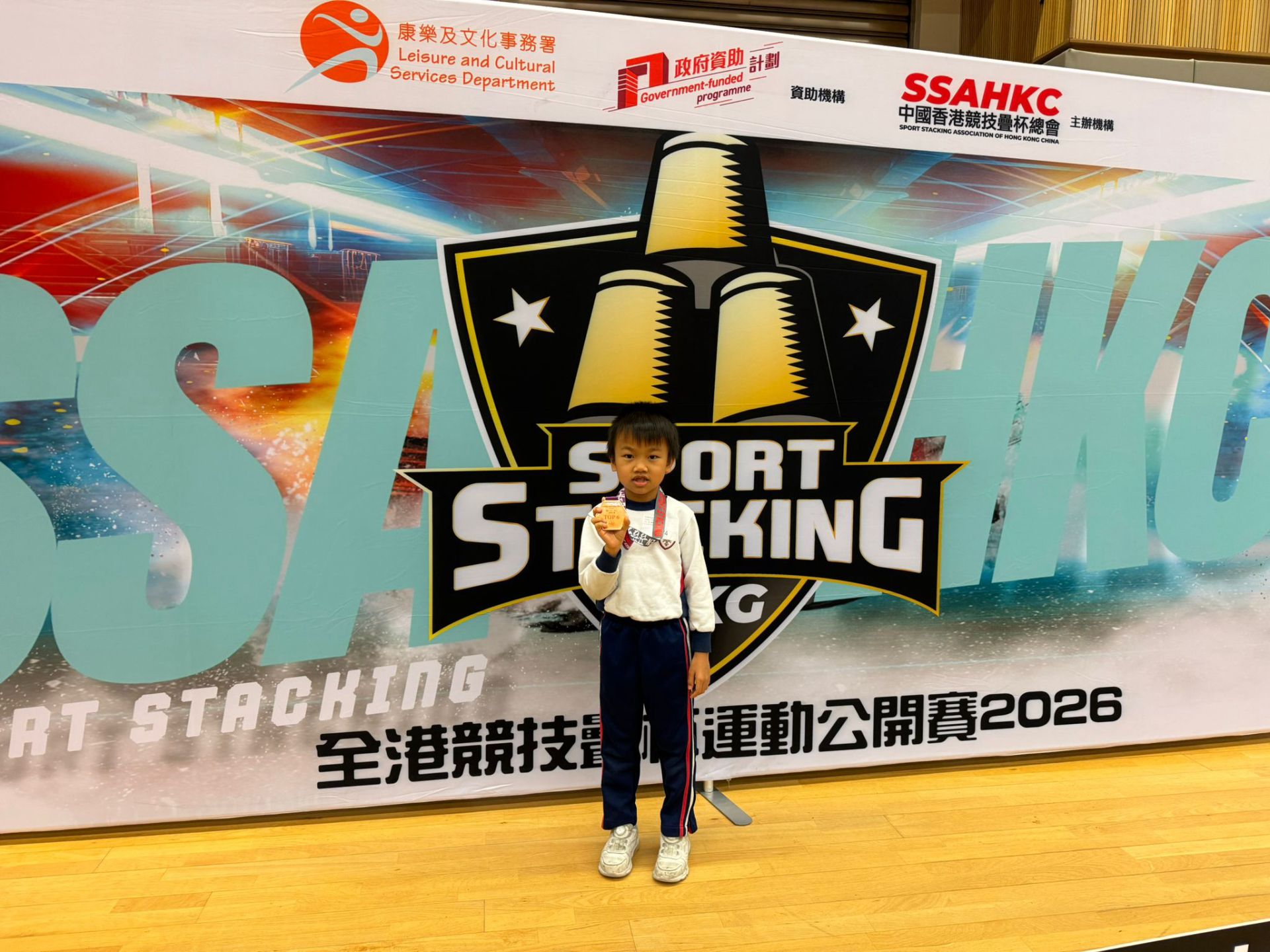 我校校隊早前出戰「全港競技疊杯運動公開賽 2026」表現卓越,憑驚人手速與專注力奪得多項殊榮!恭賀以下獲獎同學:亞軍 U7 男子 Cycle: 2A 伍倬賢 U8 女子 3-3-3: 3B 謝紫允 季軍 U8 女子 3-6-3: 3B 謝紫允 U9 女子 3-3-3: 3B 黎佳瑞 幼苗組 3-6-3: 1B 謝紫亮恭喜各位疊杯小將!得獎是努力的肯定,希望大家繼續挑戰自我,追求更快、更準、更強,在指尖上舞動出更多精彩!