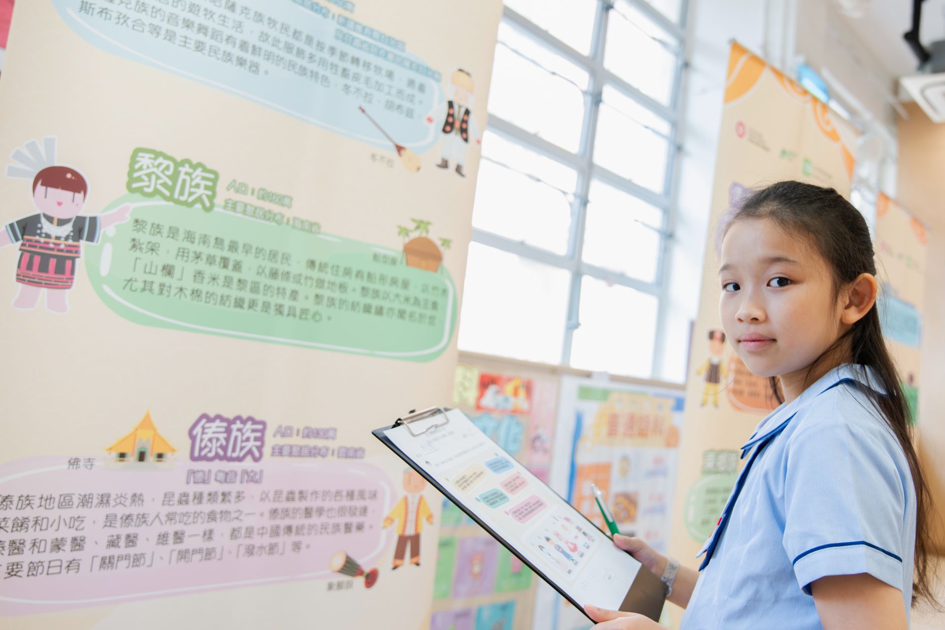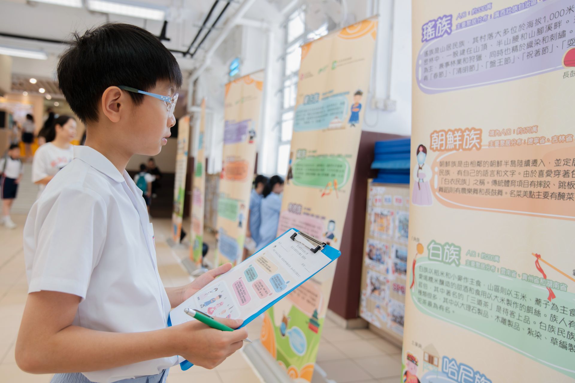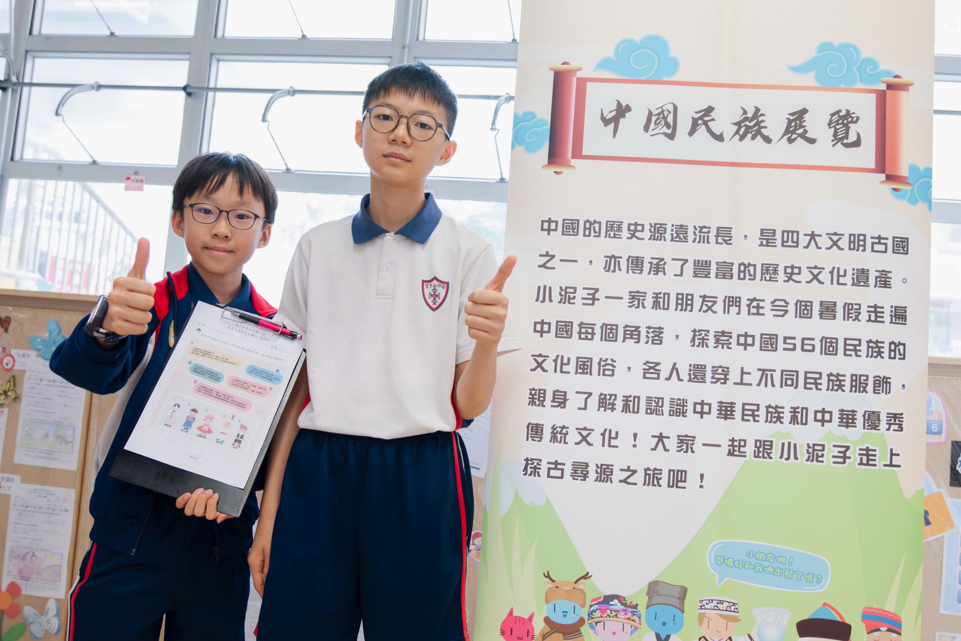 在第二次家長日當天,本校安排了別具意義的國安遊戲活動。現場設有「中國民族展覽」展板,介紹不同民族的風俗、服飾與文化特色。同學與家長一同瀏覽展板後,參與問答遊戲,從中學習維護國家安全與促進民族團結的重要性。 活動反應熱烈,同學們不但加深對中華民族多元一體的認識,更明白尊重與包容不同文化,正是維護社會穩定與國家安全的基石。感謝家長積極陪伴,攜手培育孩子的國家歸屬感與責任感。