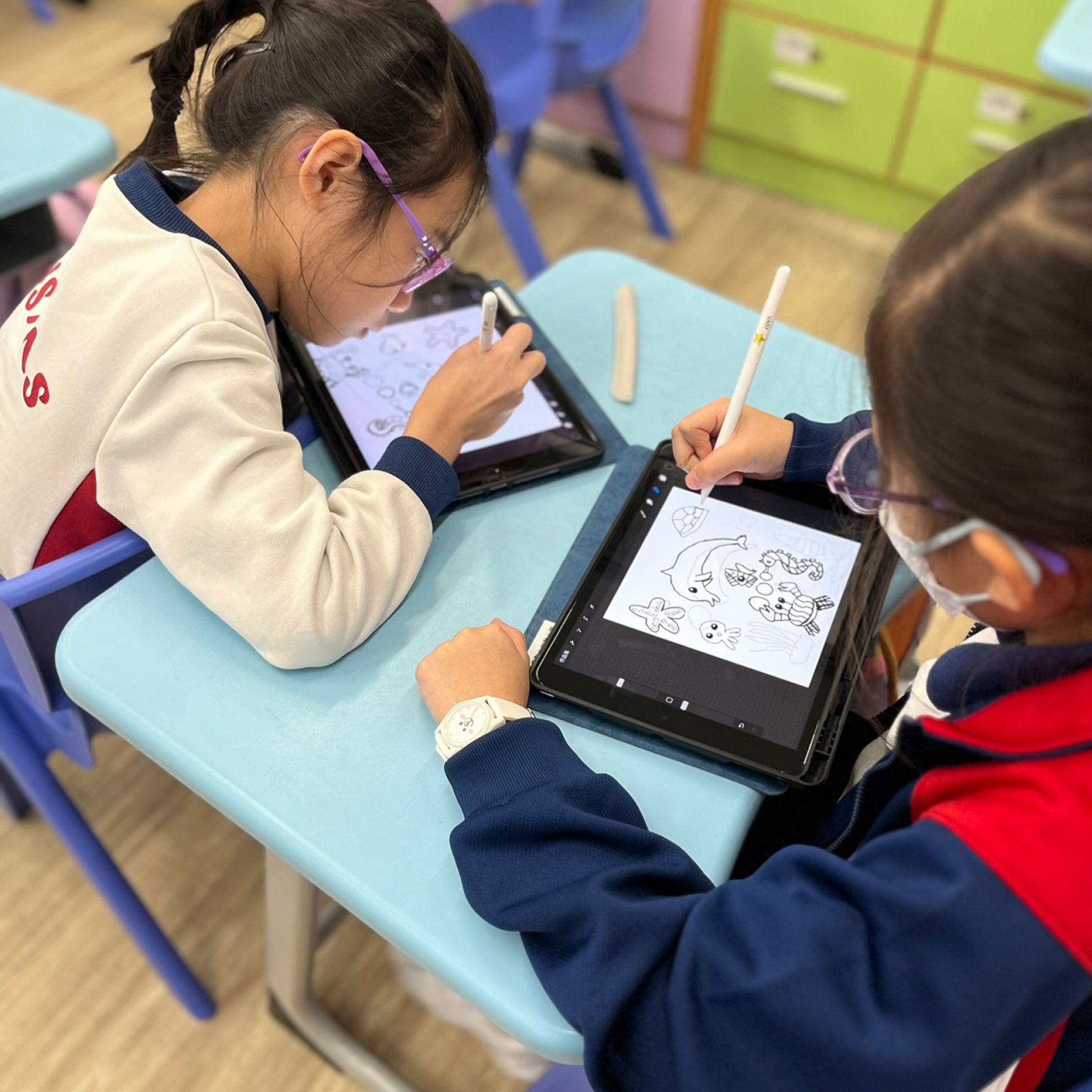 現時科技日新月異,除了傳統紙本上的繪畫外,電繪已成時下熱門的新型繪畫方式。為培育學童對藝術的興趣,學校開辦了電繪班,讓學生學習運用Procreate的繪畫操作及塗色技巧,發揮創意進行創作。