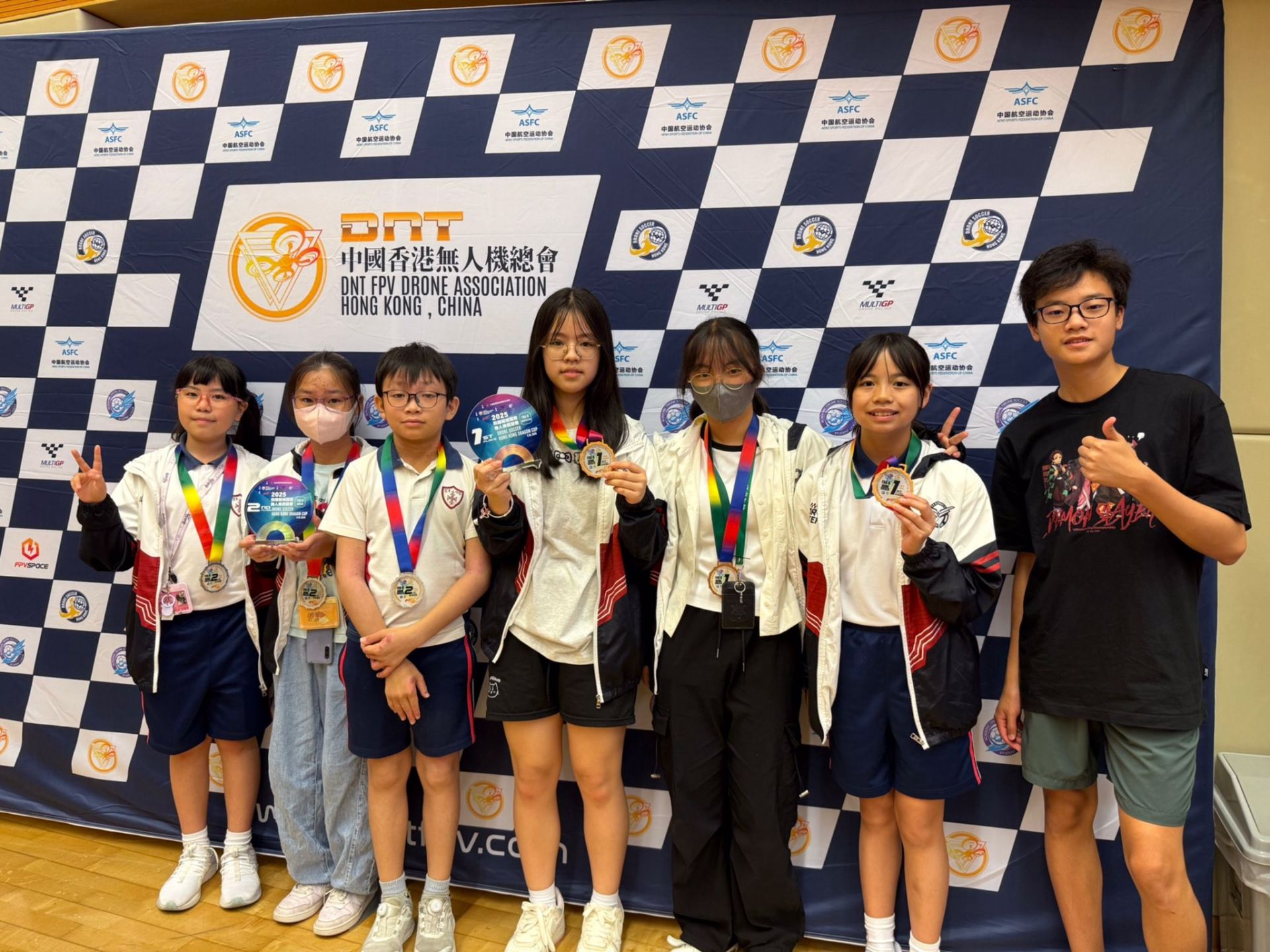 本校無人機足球隊早前參加由九龍城區康樂體育促進會主辦、中國香港無人機總會合辦的<2025飛躍龍城無人機大賽>,本校派出的隊員更在賽事中囊括了冠軍及亞軍,實在可喜可賀!