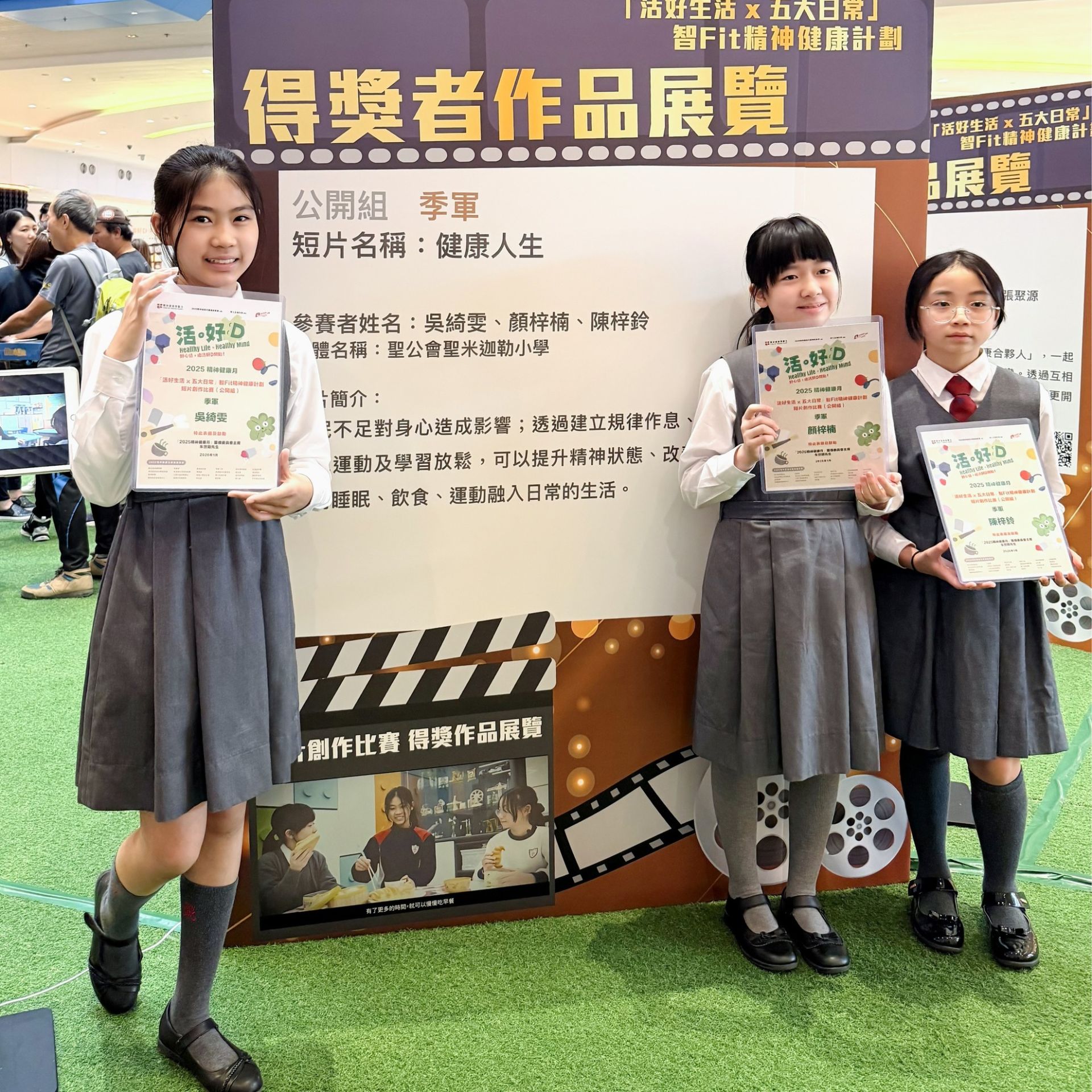 本校媒體創作組同學參加由 2025精神健康月籌備委員會主辦的「活好生活 x 五大日常」短片創作比賽,憑藉作品《健康人生》,在眾多參賽者中脫穎而出,榮獲公開組季軍!恭喜各位得獎同學!