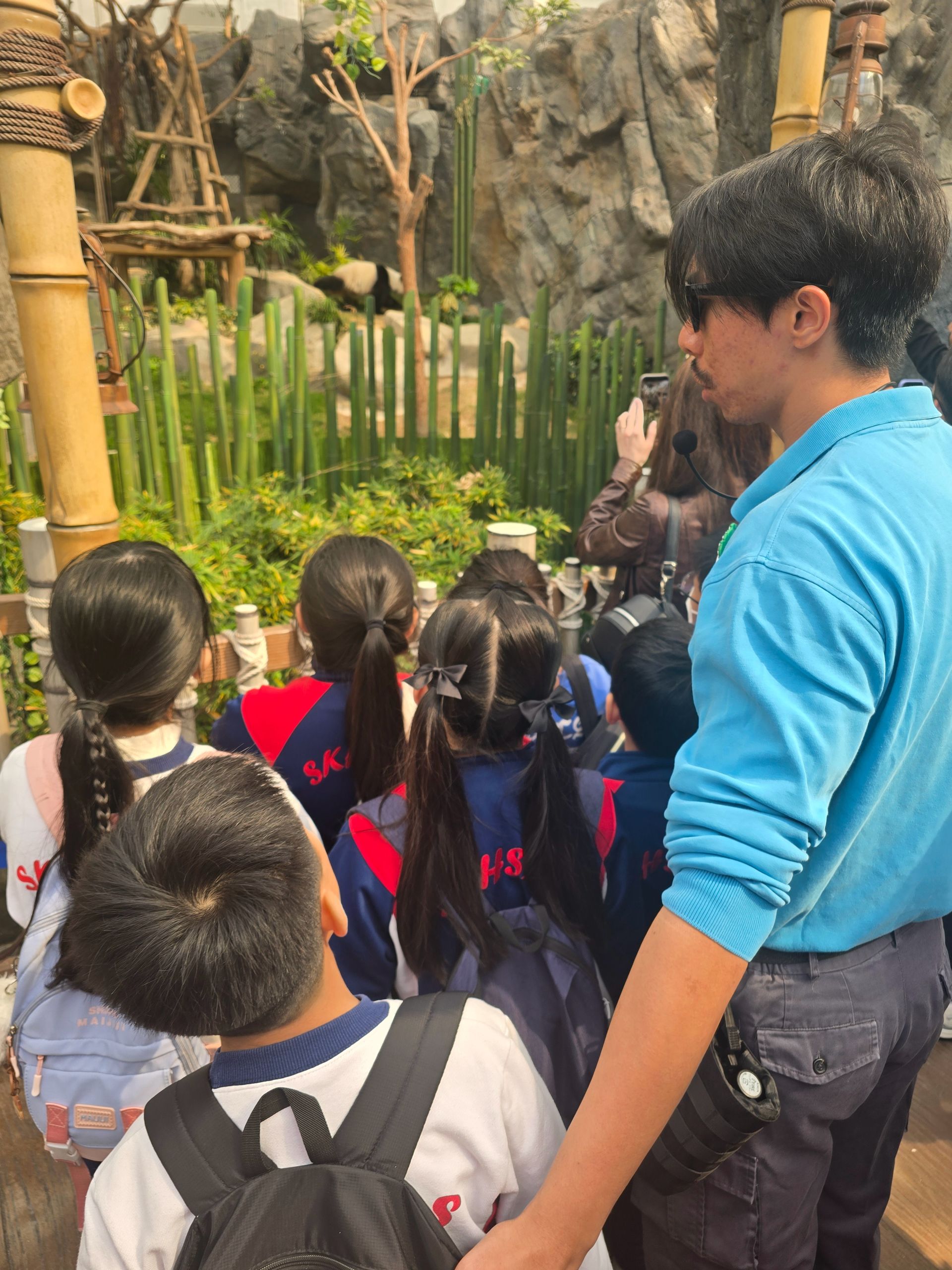 為加深《憲法》與《基本法》學生校園大使對國家珍稀物種、生態保育及野生動物保護的認知,並進一步理解生態安全與國家安全之間的緊密聯繫,我們特別安排大使們參與海洋公園全方位學習之旅。 活動內容包括互動專題講座「大熊貓的就地保育」,以及展館實地考察。透過專業講解與親身觀察,大使們近距離認識國家珍稀動物的生態習性,瞭解國家與香港在生態保育方面的持續努力與重要成果,從而深刻體會環境保護、生態安全對社會可持續發展及國家整體安全的深遠意義。
