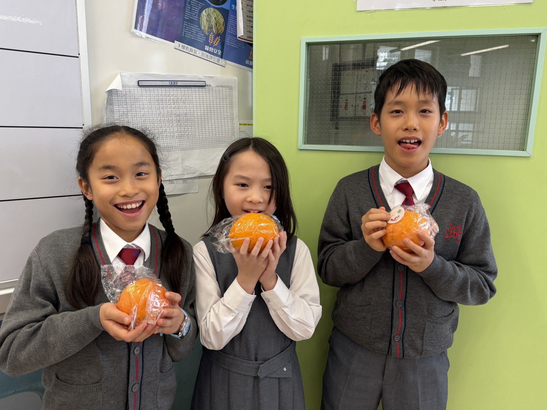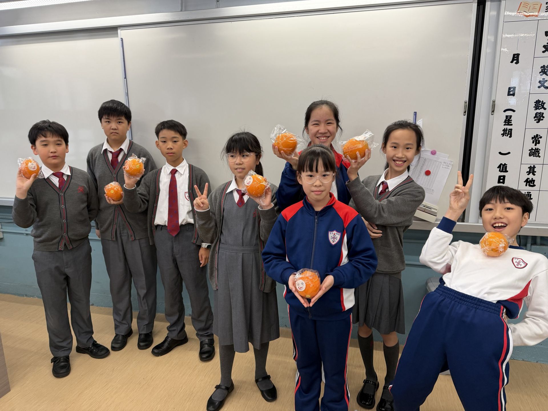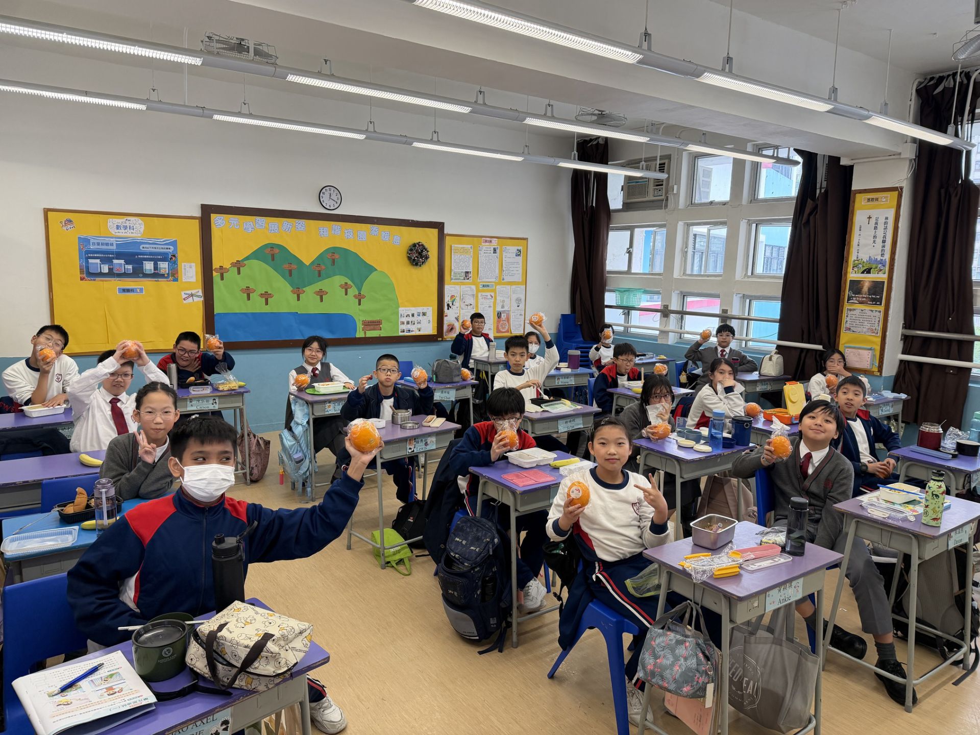 早前學校特意為全體同學派發每人一個橙,一起感受水果的清香與健康!雖然橙子的外皮上帶有花紋或斑點,但它們的果肉一樣多汁香甜。我們希望同學們從這顆橙子中學會欣賞「不完美中的美」- 外觀不完美,並不代表品質不好;真正的價值,往往藏在內在。讓我們學會接納、欣賞與感恩,一起做個擁有陽光笑容的小橙人!