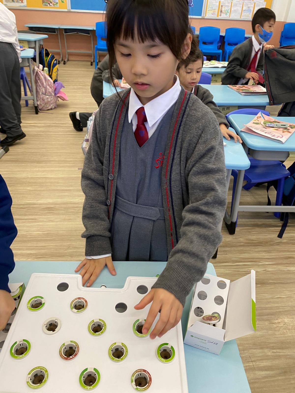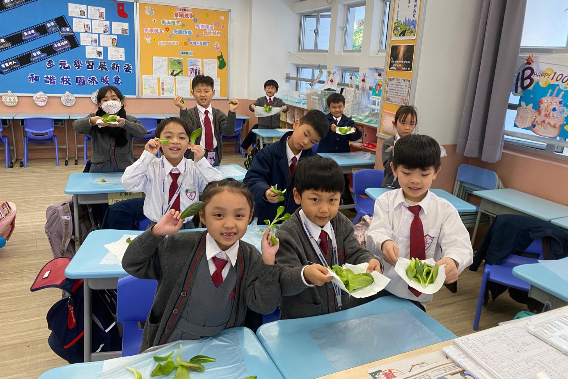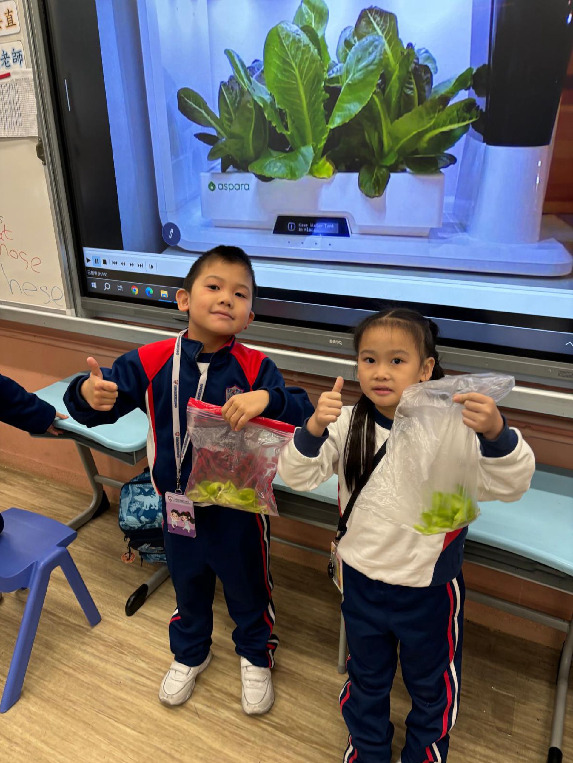 一年級的同學在科學科課堂裏學習觀察及探究植物,利用水耕種植機學習種植,探究植物需要甚麼才能健康成長。他們親手由種子培育到大棵的羅馬生菜,學習從播種到收穫的過程,了解植物生長條件及照顧技巧,培養耐心與責任感,體驗自然與生活的連結。
