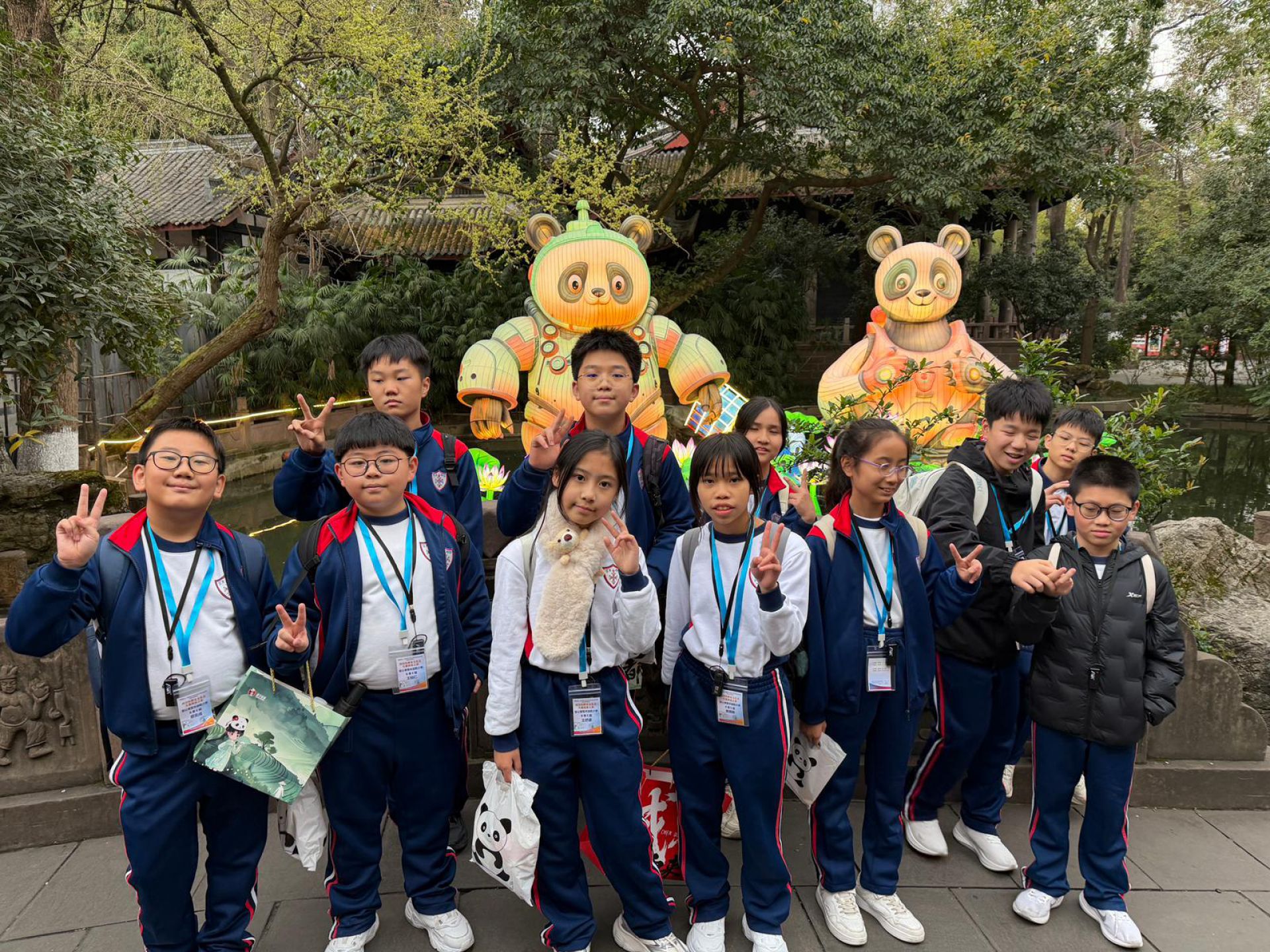 聖米迦勒的五年級同學們早前出發去四川!首站來到成都著名的武侯祠。透過導賞員生動的講解,同學們彷彿穿越回三國時代,深入了解諸葛亮與劉備的英雄事蹟。大家在古建築間穿梭,不僅學習歷史,更深刻感悟諸葛亮「忠誠、智慧與擔當」的精神。隨後,同學們漫遊錦里古街。走在蜿蜒的青石板路上,兩旁仿古建築錯落有致。精緻的糖畫、華麗的蜀繡、神祕的川劇臉譜……琳瑯滿目的非遺攤位讓大家目不暇接!同學們親身感受到巴蜀大地的獨特風韻與深厚文化底蘊,這趟文化之旅收穫滿滿!