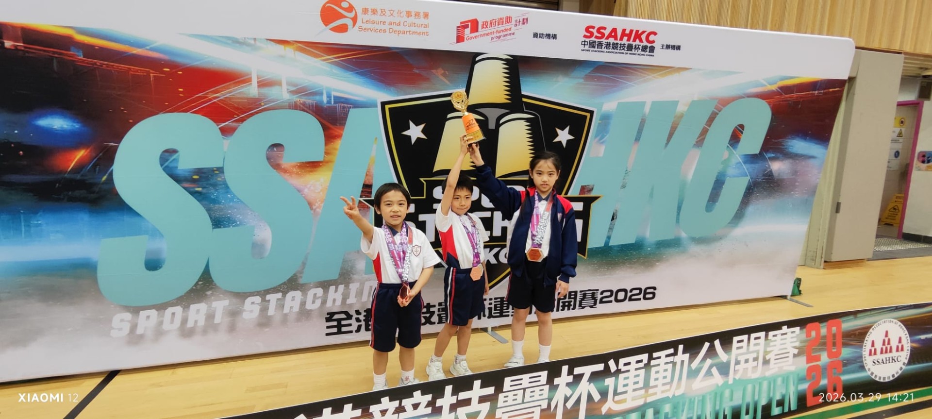 我校校隊早前出戰「全港競技疊杯運動公開賽 2026」表現卓越,憑驚人手速與專注力奪得多項殊榮!恭賀以下獲獎同學:亞軍 U7 男子 Cycle: 2A 伍倬賢 U8 女子 3-3-3: 3B 謝紫允 季軍 U8 女子 3-6-3: 3B 謝紫允 U9 女子 3-3-3: 3B 黎佳瑞 幼苗組 3-6-3: 1B 謝紫亮恭喜各位疊杯小將!得獎是努力的肯定,希望大家繼續挑戰自我,追求更快、更準、更強,在指尖上舞動出更多精彩!