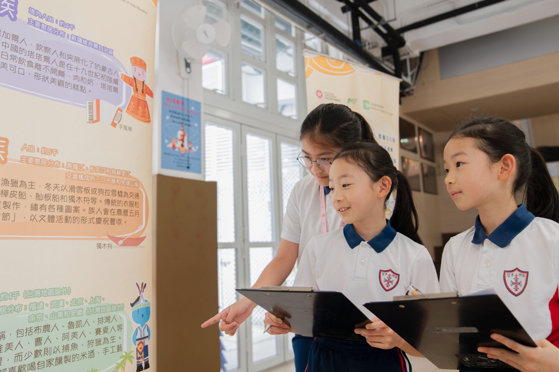 在第二次家長日當天,本校安排了別具意義的國安遊戲活動。現場設有「中國民族展覽」展板,介紹不同民族的風俗、服飾與文化特色。同學與家長一同瀏覽展板後,參與問答遊戲,從中學習維護國家安全與促進民族團結的重要性。 活動反應熱烈,同學們不但加深對中華民族多元一體的認識,更明白尊重與包容不同文化,正是維護社會穩定與國家安全的基石。感謝家長積極陪伴,攜手培育孩子的國家歸屬感與責任感。
